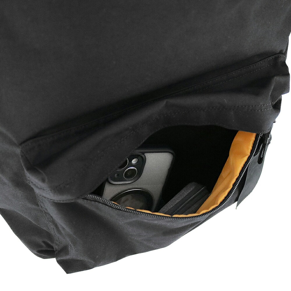 上部の浅めポケットは、電車内で前に抱えたときにも手が届きやすいようこだわった作りに。