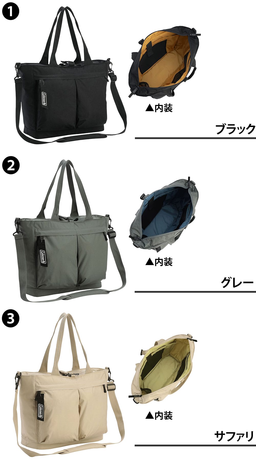 | カラー | 1.ブラック(-2234509) 2.グレー(-2234424) 3.サファリ(-2234494) | ||