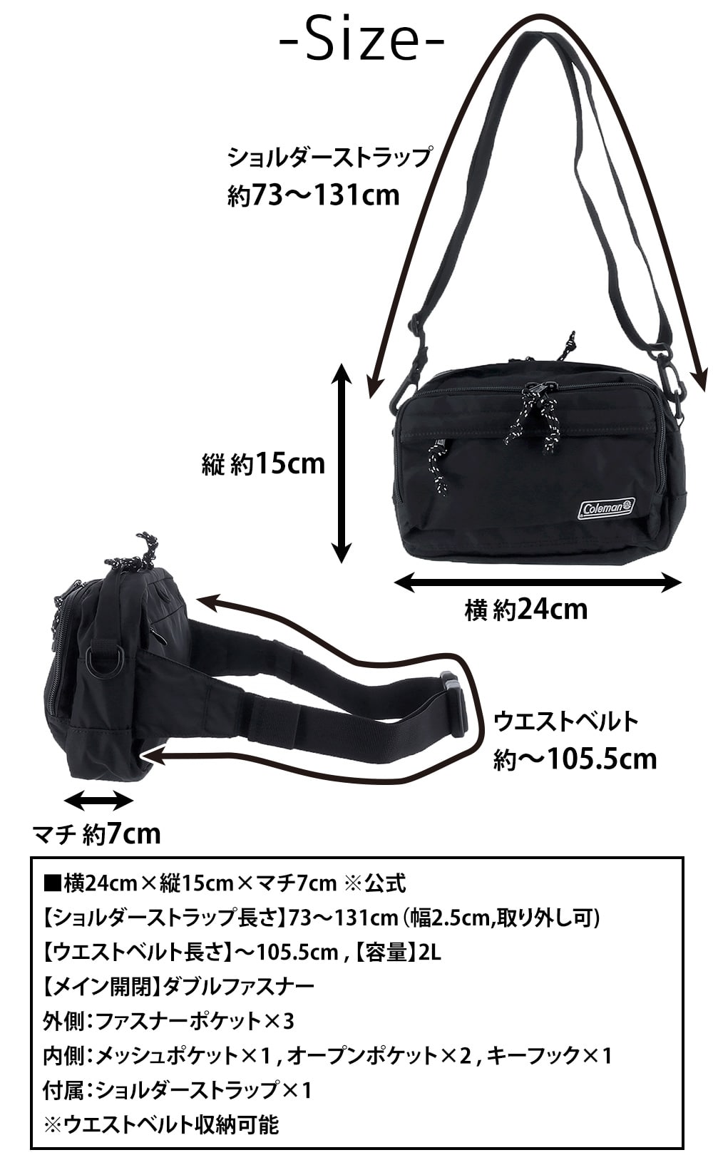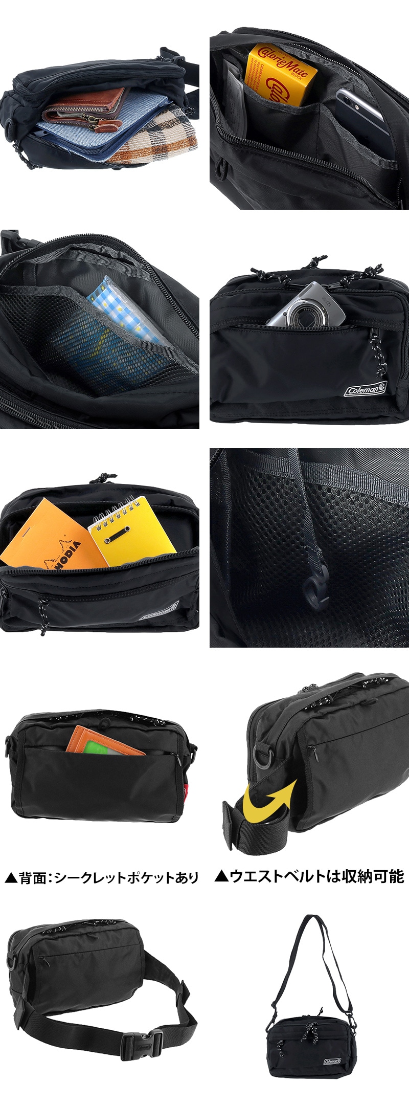 荷物をわけて収納出来るから旅行にも便利な、2WAYショルダーウエストバッグ