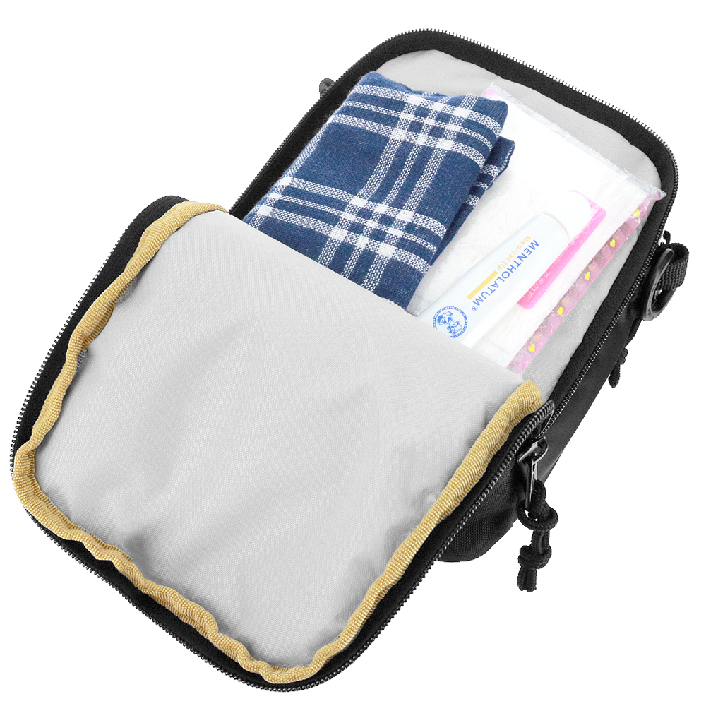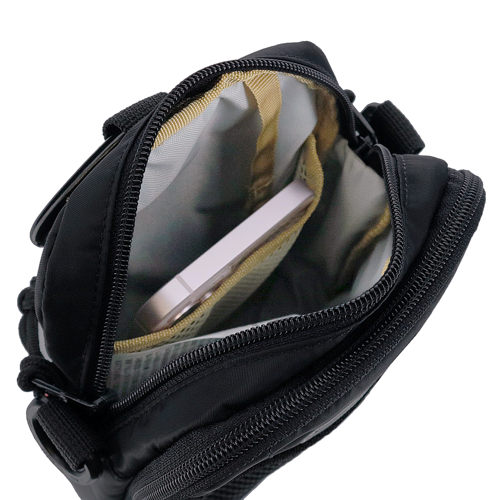 豊富なポケットを備えたスクエア型ショルダーポーチ