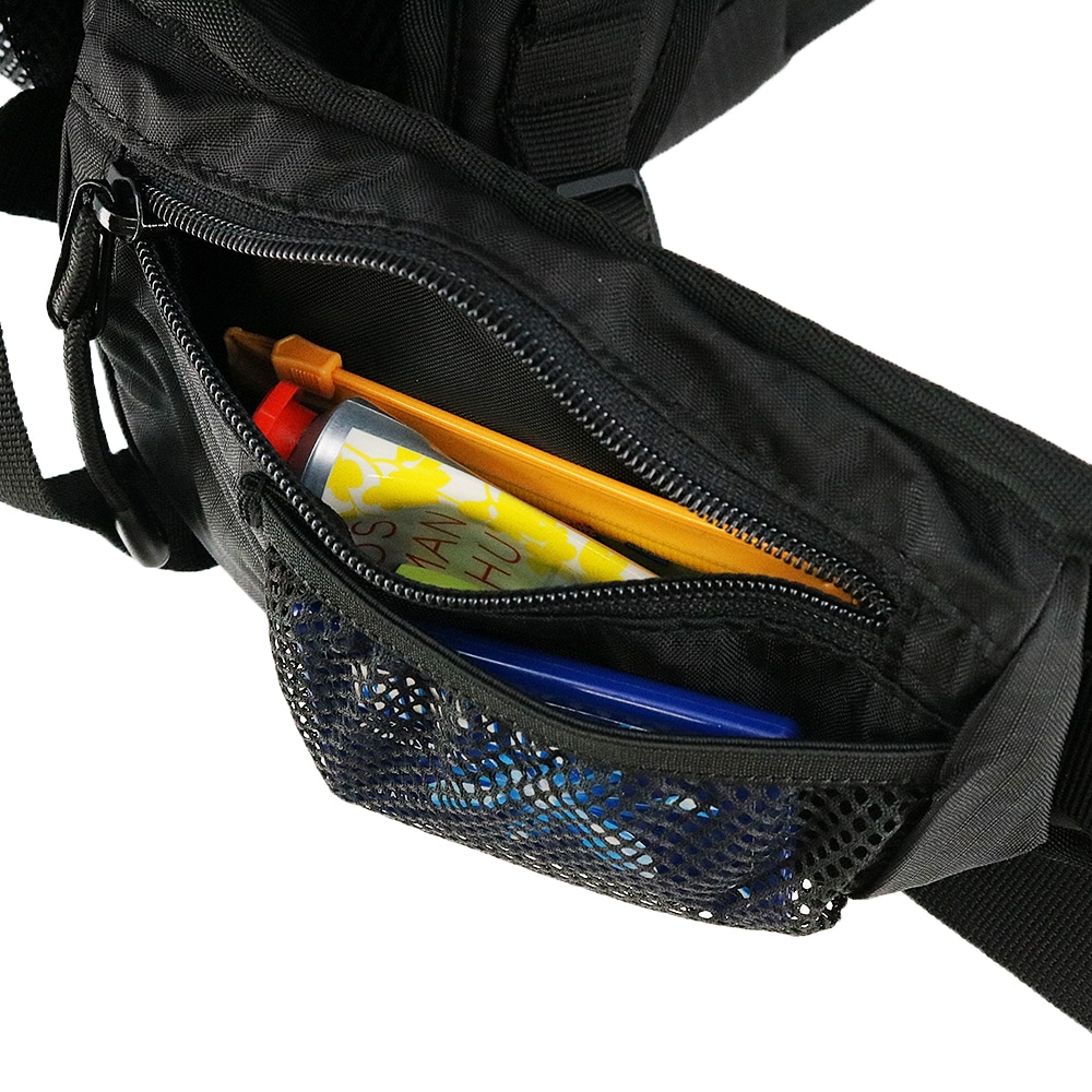 胴固定ベルト×1(ファスナーポケット×2、メッシュオープンポケット×1(伸縮性有))