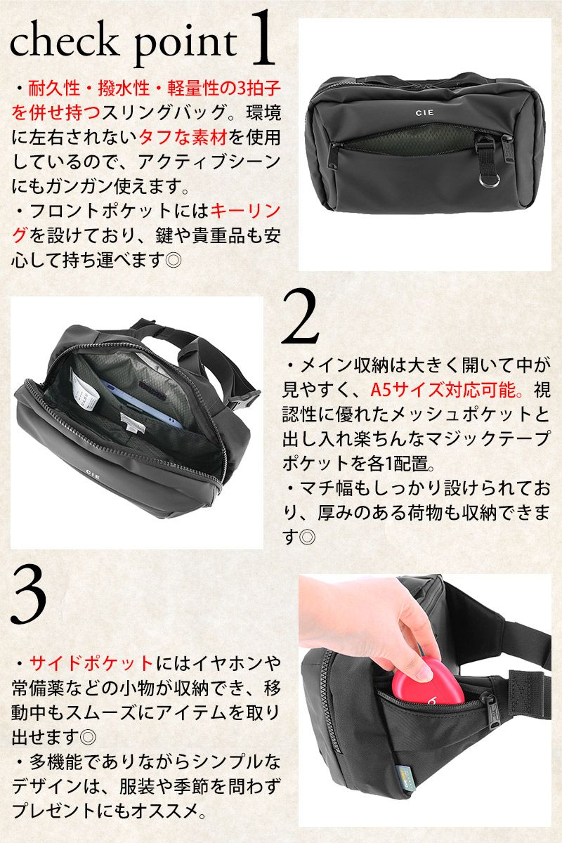 シー CIE スリングバッグ ウエストバッグ LEAP SLING BAG - S 072303 2.グレー -15 メンズ レディース