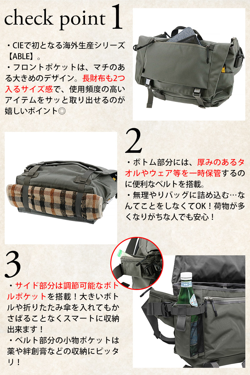 CIEバッグで初めて海外生産による【ABLE】シリーズ。