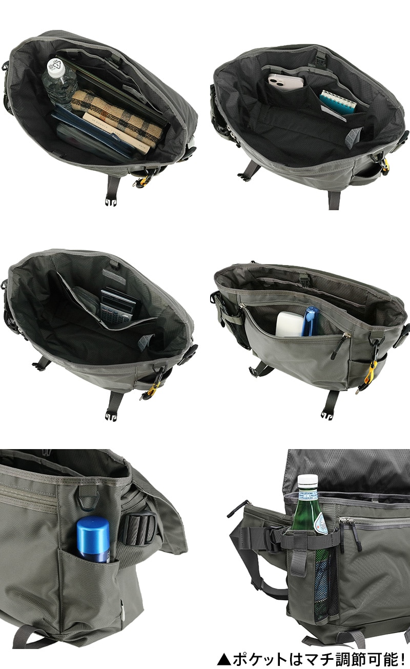 サイドメッシュオープンポケット×1(伸縮性・マチ調節ベルト有)