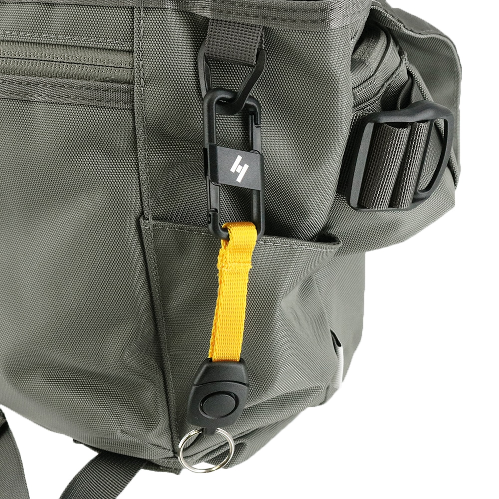 ・着脱可能なイエローテープをアクセントにしたキーホルダーを付属。