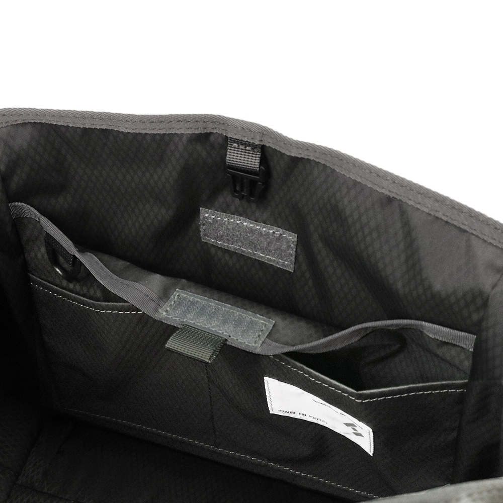 本体生地には840d CORDURA NYLON re/corを使用しており、高密度で織りあげた撚糸した糸で織る事で、生地感もきれいで綾織のように見える高級感が特徴。