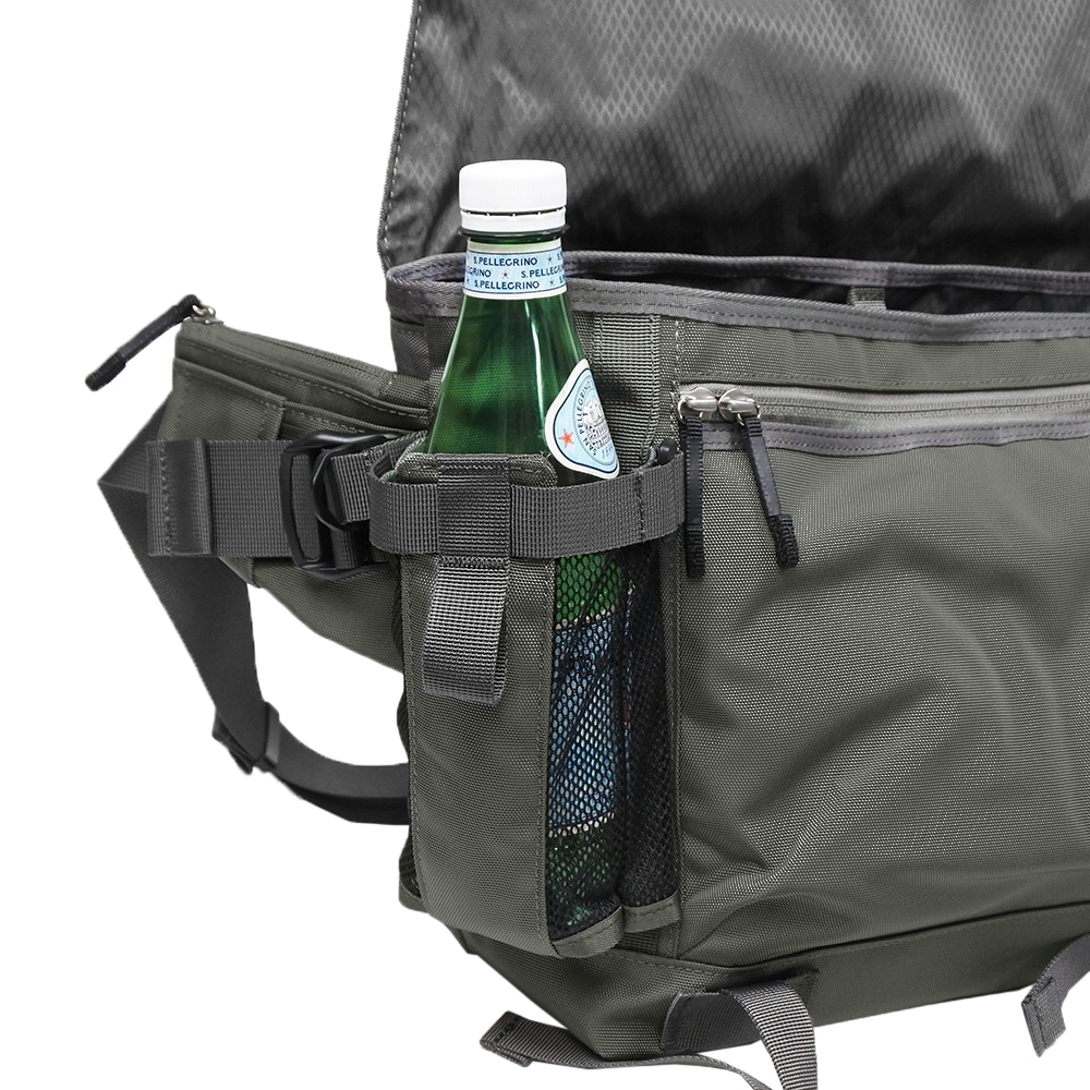 ・マチ幅調整可能なサイドメッシュ素材のボトルポケットを搭載。