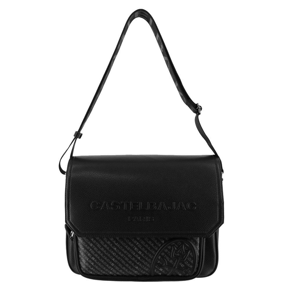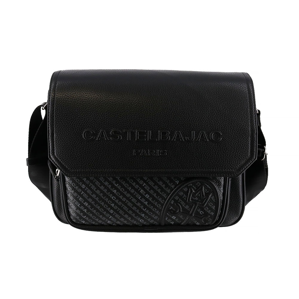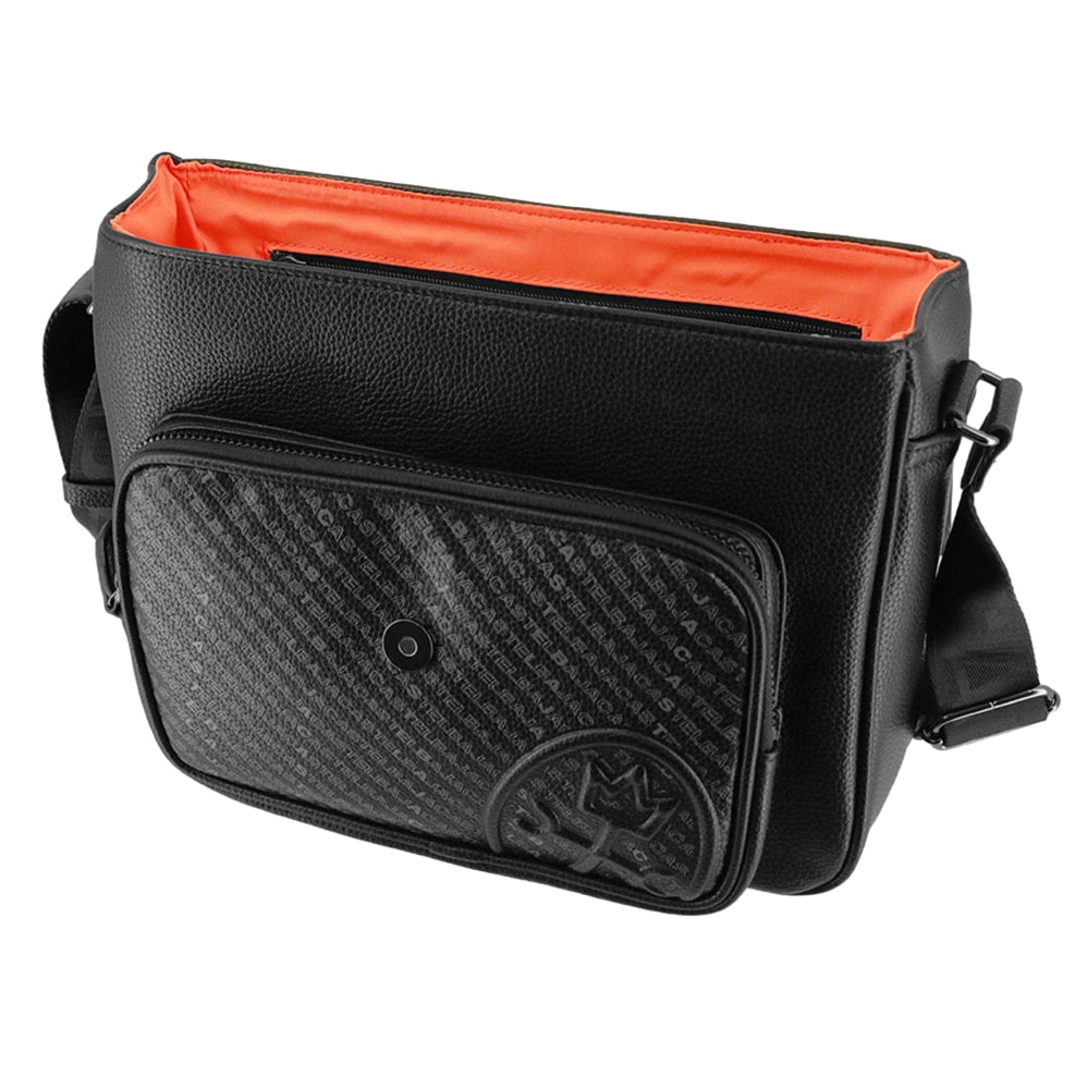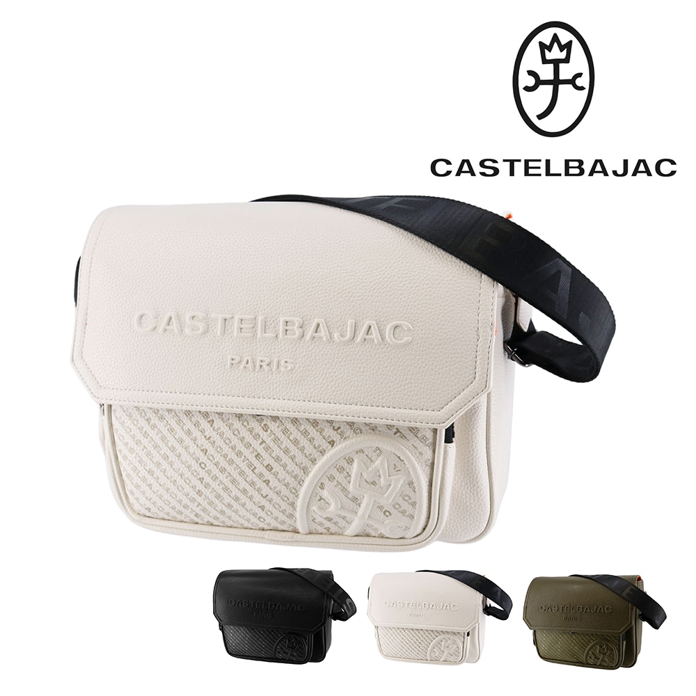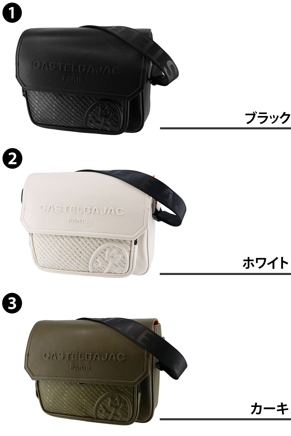フラップのエンボスロゴや立体的な家紋デザインがブランドらしさを演出したショルダーバッグ。