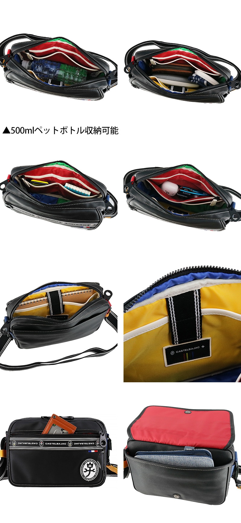 カステルバジャック ショルダーバッグ コンパクト 軽量 デイリーユース 通勤 通学 ロゴ 普段使い ブランド カジュアル オシャレ カッコいい 旅行 男女兼用 人気 A5 B6サイズ LUXE I-49102