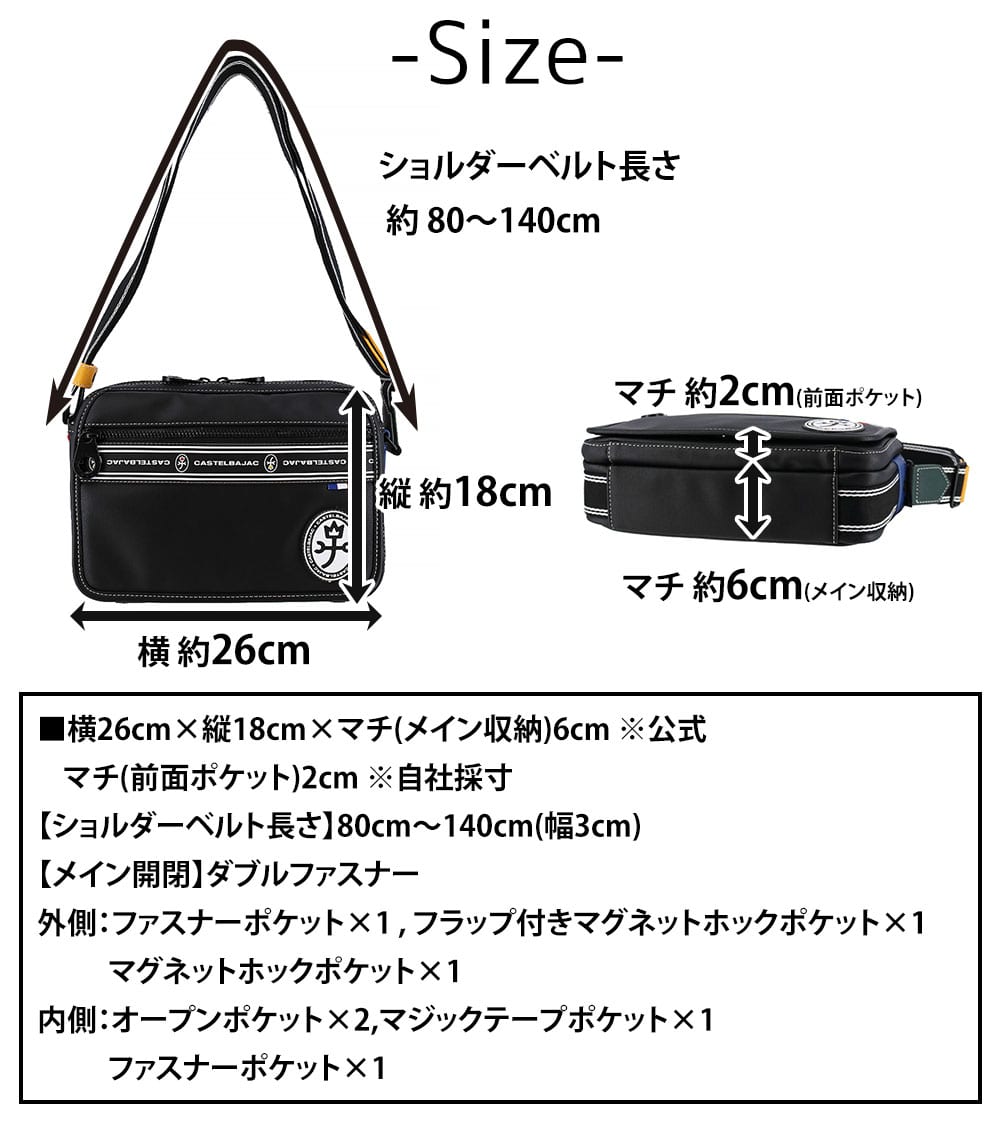 カステルバジャック バッグ ショルダーバッグ 斜めがけバッグ CASTELBAJAC ルックス ヨコショルダー 49102 メンズ レディース 送料無料 誕生日プレゼント ギフト ラッピング無料 【正規代理店】 1.ブラック -blk