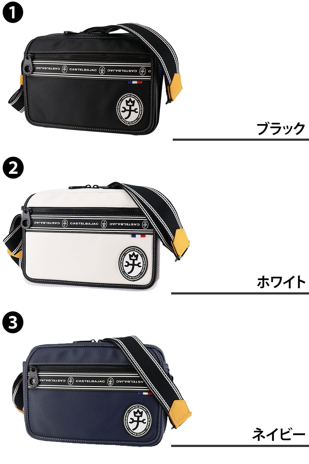 ブランドの4原色をポイントで使用し、節々にブランドを表現した、カステルバジャック好きにピッタリのカジュアルバッグ『ルックス』のショルダーバッグ。