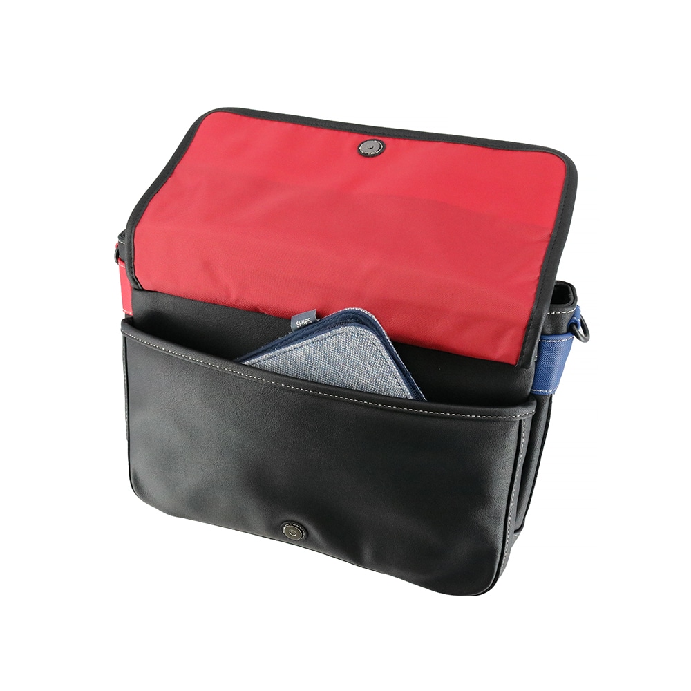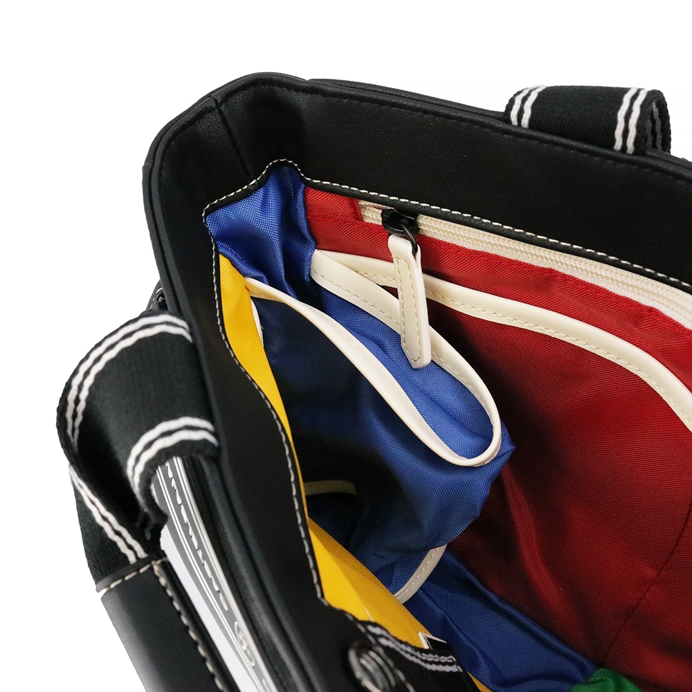 メインルームはB5ファイルサイズが収納できる大きさで、内装カラーはブランドの4原色を大胆に使用したデザインです。