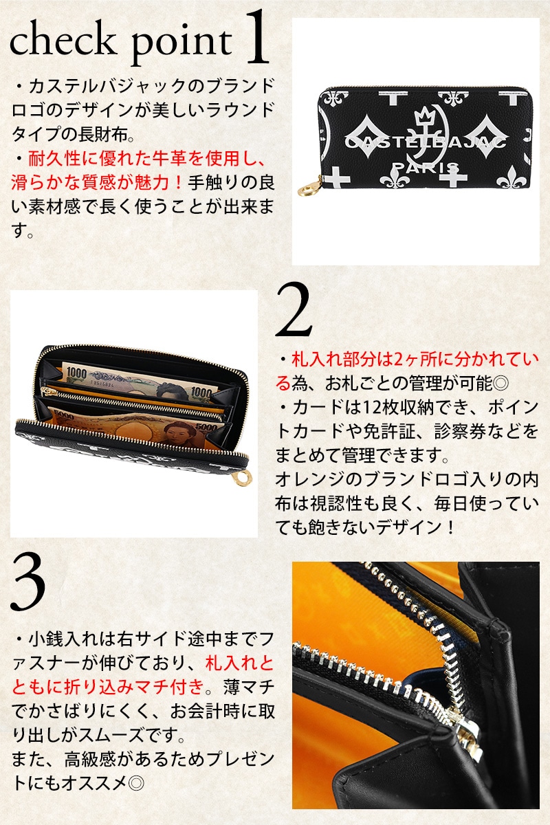 カステルバジャックのモノグラムを大胆にプリントした長財布です。
