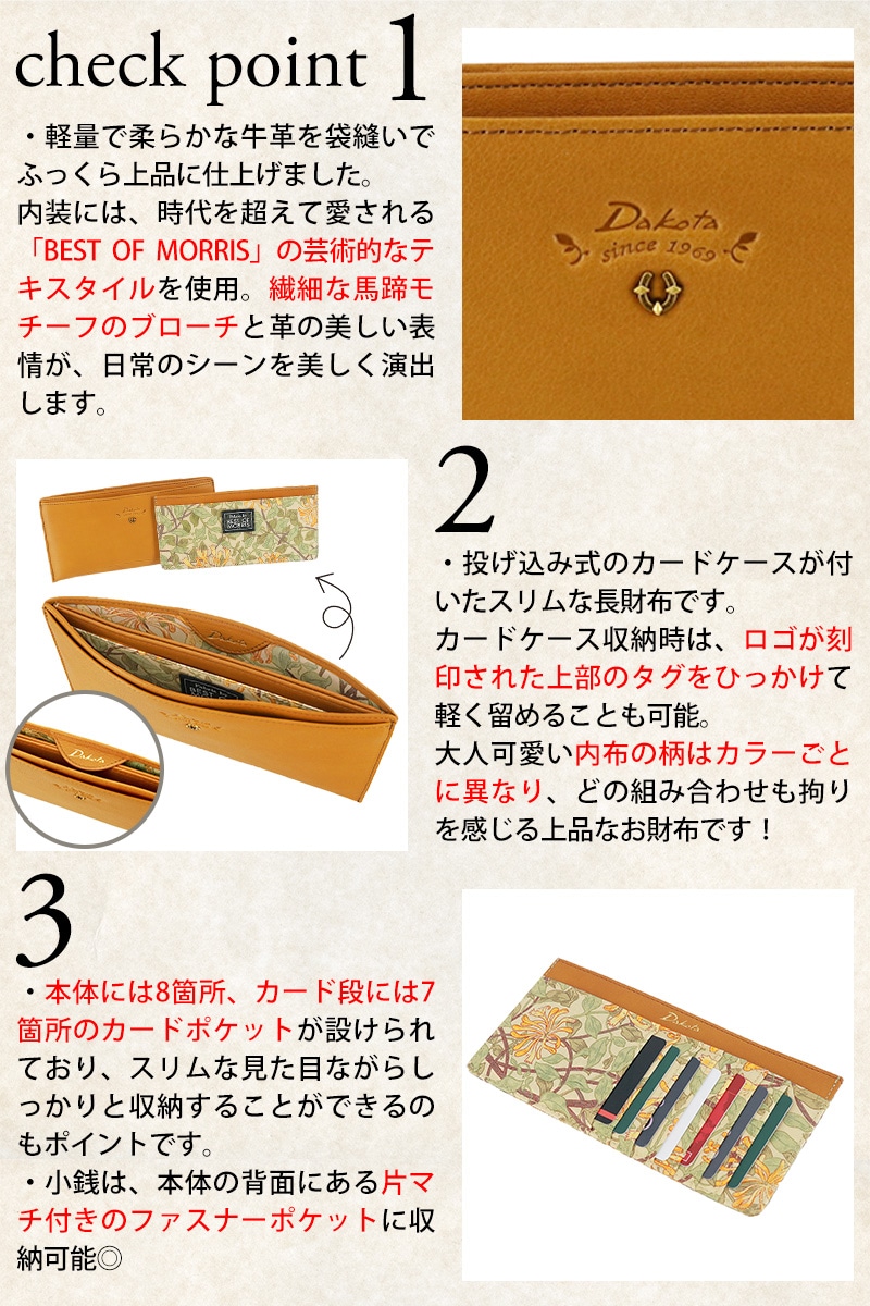 ダコタ Dakota お財布 小物 薄い レザー 本革 BEST OF MORRIS クラシック モダン レトロ テキスタイル レディース 女性 上品 大人 人気 かわいい フォーマル カジュアル ギフト Bibury