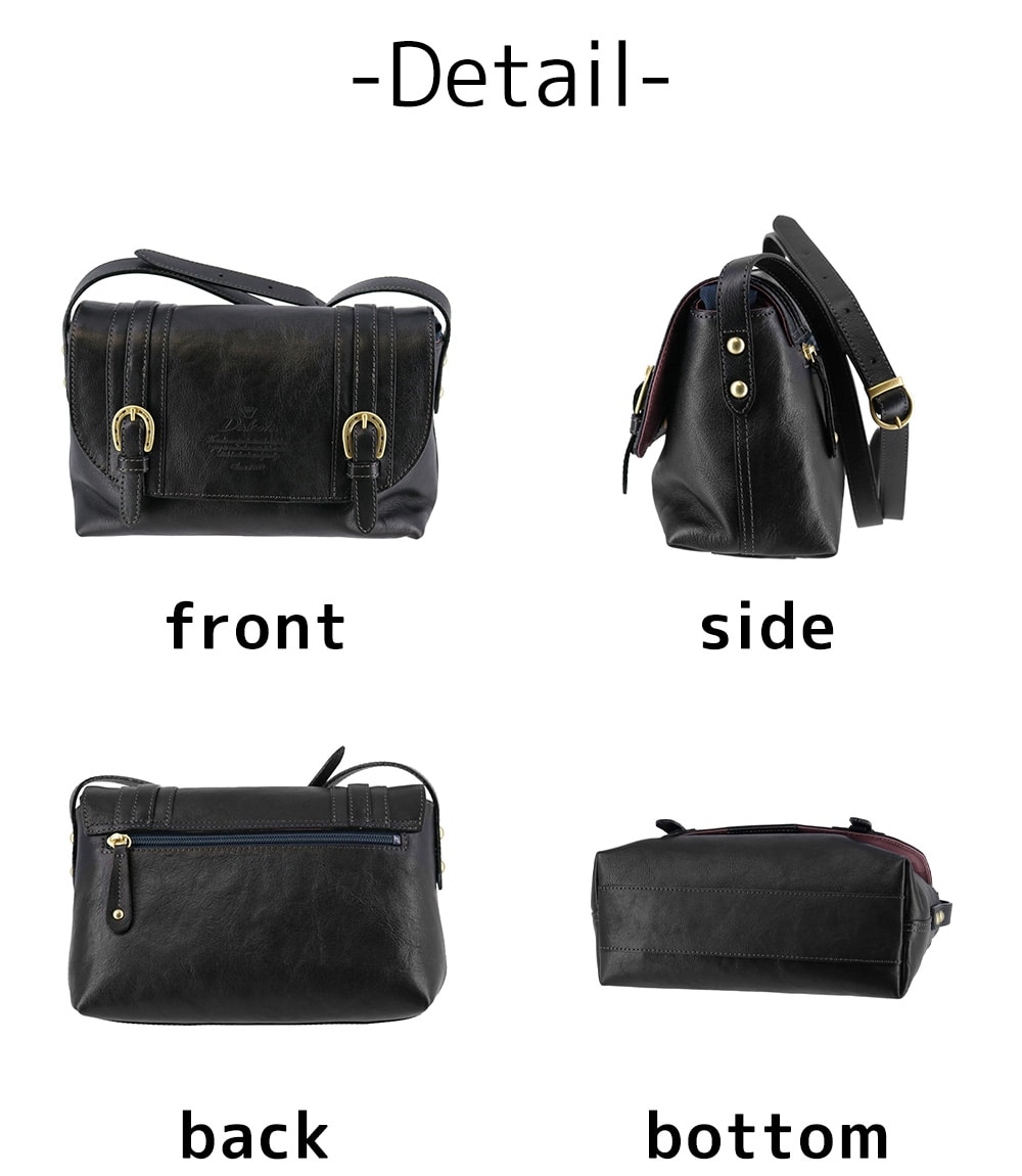 ・5段階に長さ調節出来るショルダー紐の留め具にもアンティーク調の金具を使うなど、細部までこだわっています。