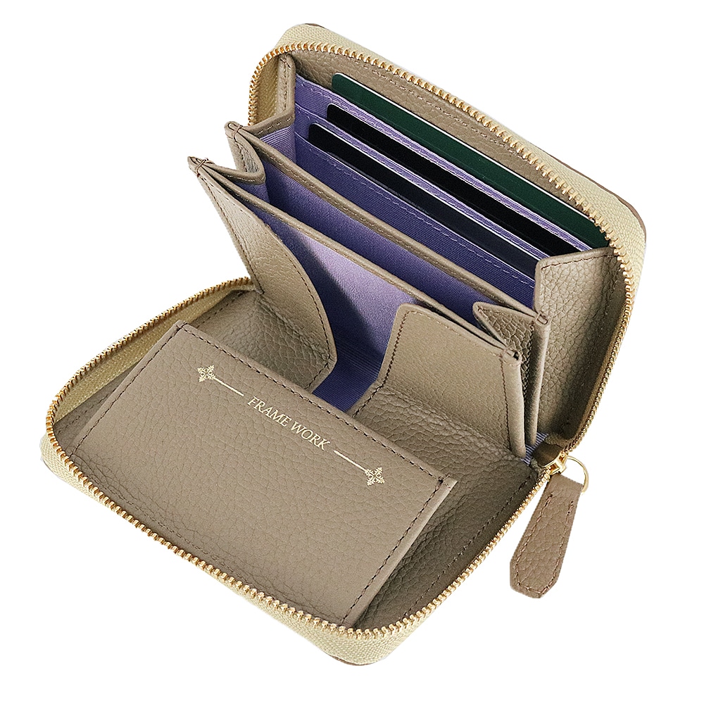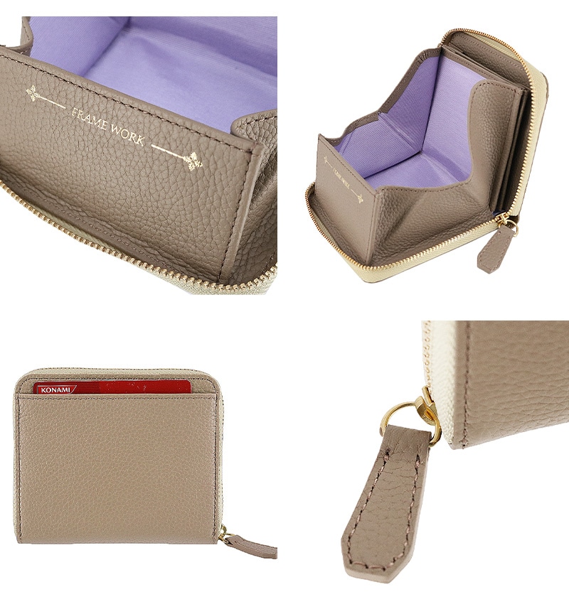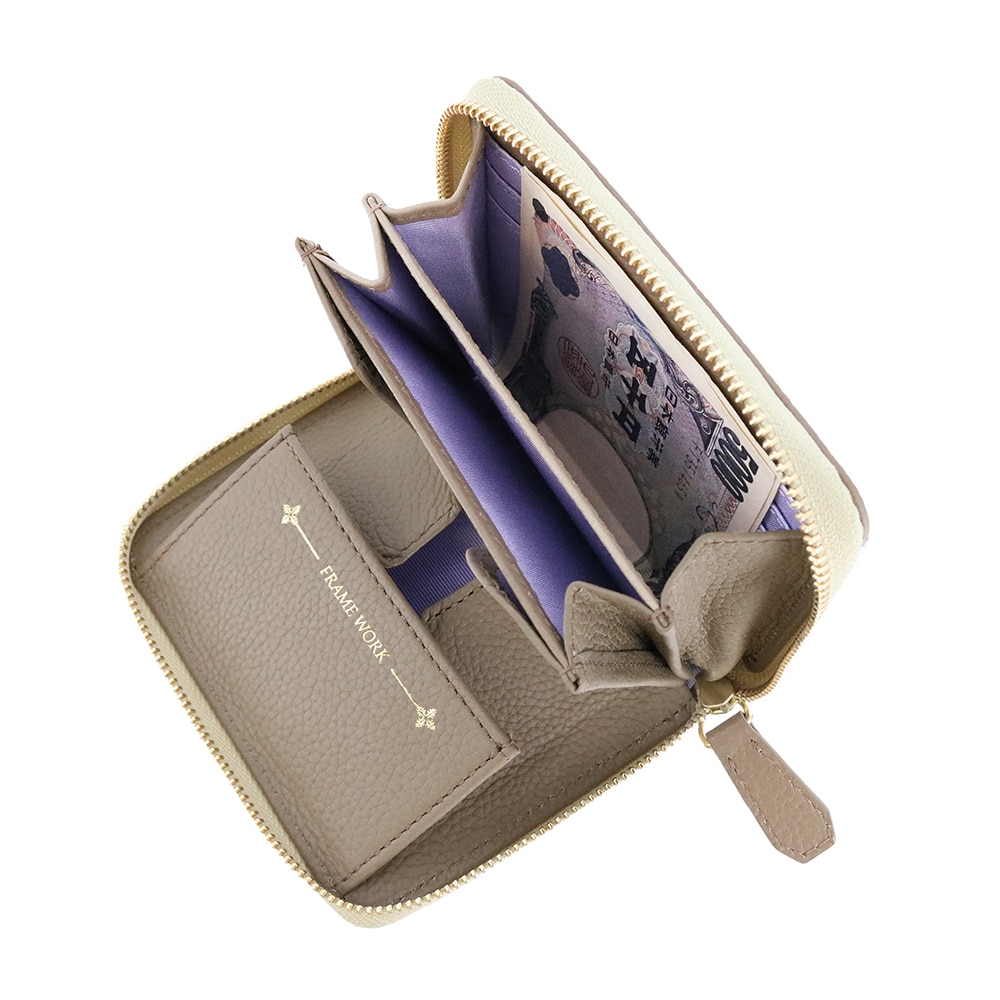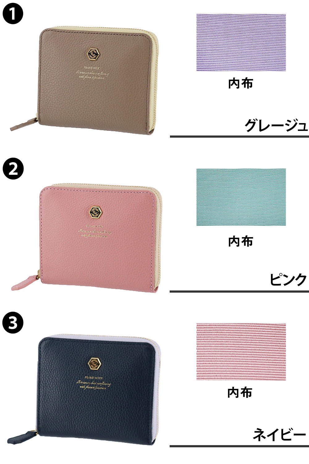 フレームワーク FRAME WORK 財布 ファスナー ミニ コンパクト 英字 人気 通勤 おしゃれ 大人 可愛い 旅行 綺麗め 上品 牛革 本革 一粒万倍日 吉日 エレガント シンプル パステル Quick