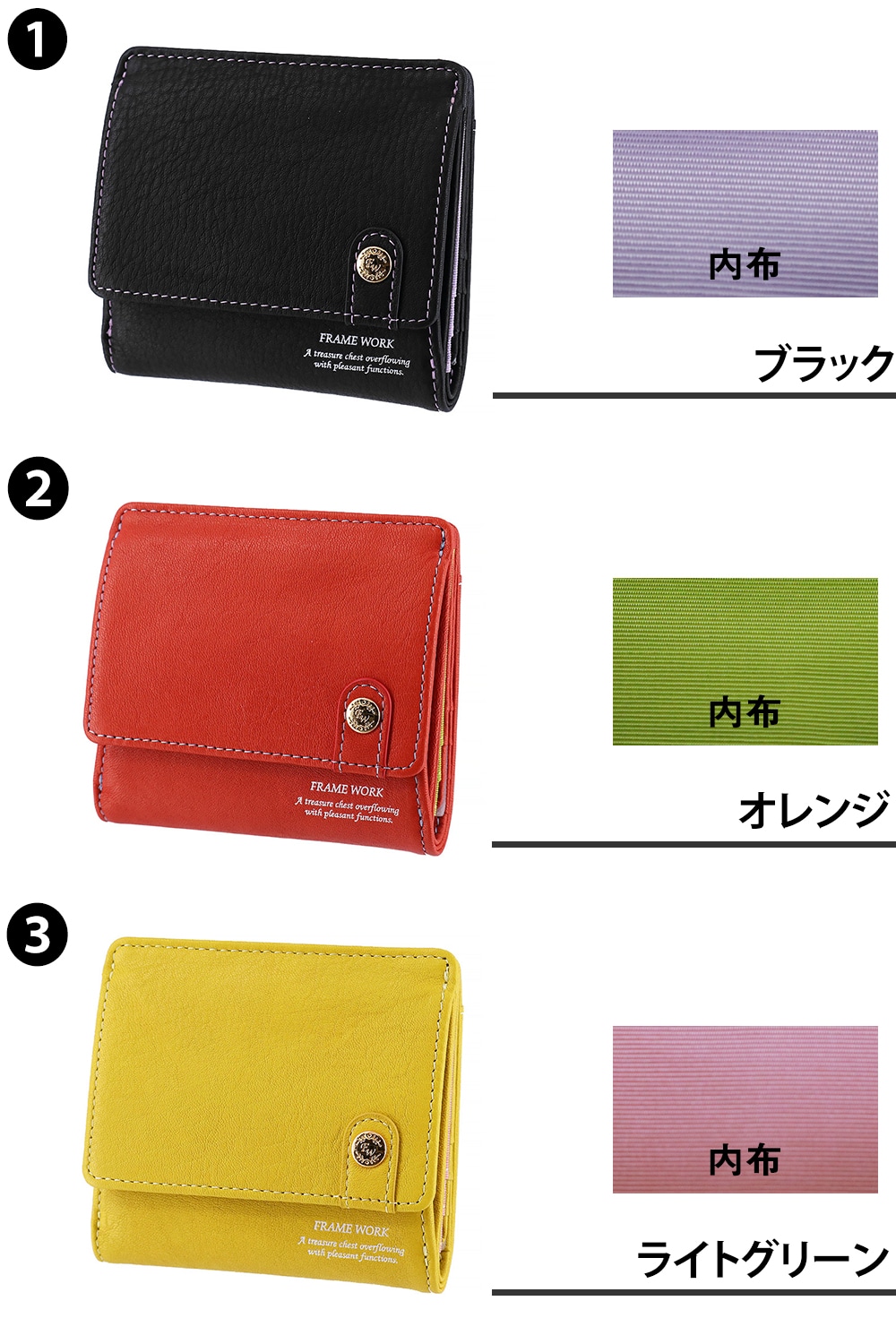 フレームワーク 財布 二つ折り財布 折財布 ミニ財布 本革 小銭入れあり FRAME WORK シアー 45081 レディース ブランド 牛革 送料無料 誕生日プレゼント ギフト ラッピング無料 【正規代理店】 3.ライトグリーン -54