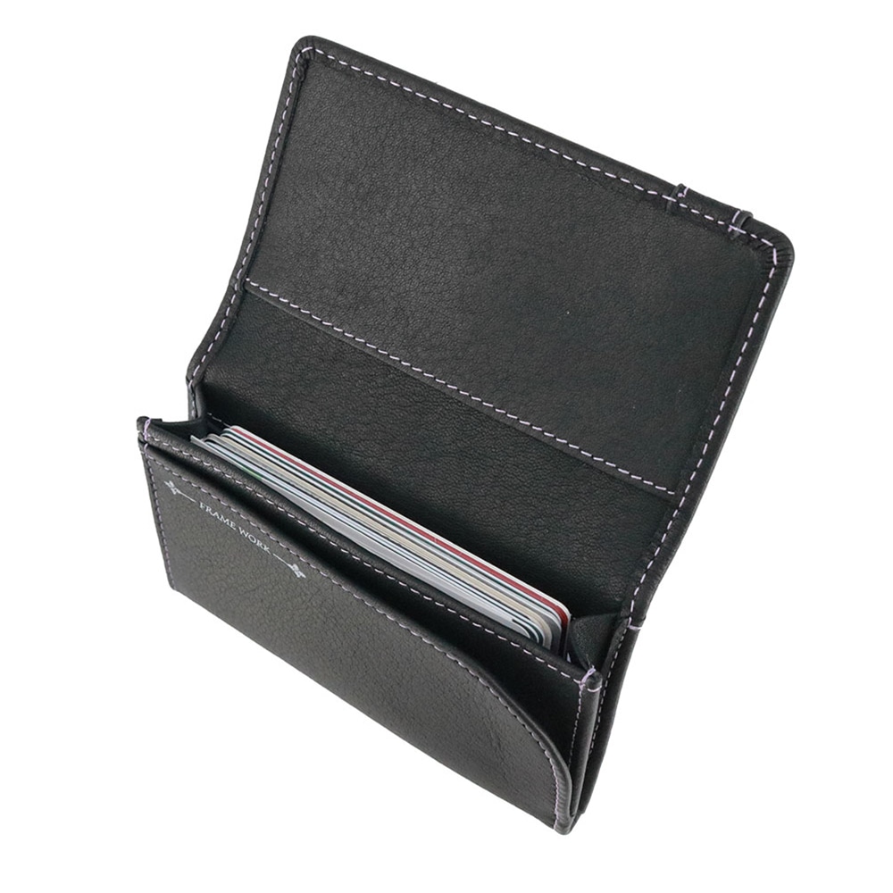 ビジネスシーンにおいて無駄のない動作でデキる女性を演出する、留め具のないかぶせタイプの名刺入れです。