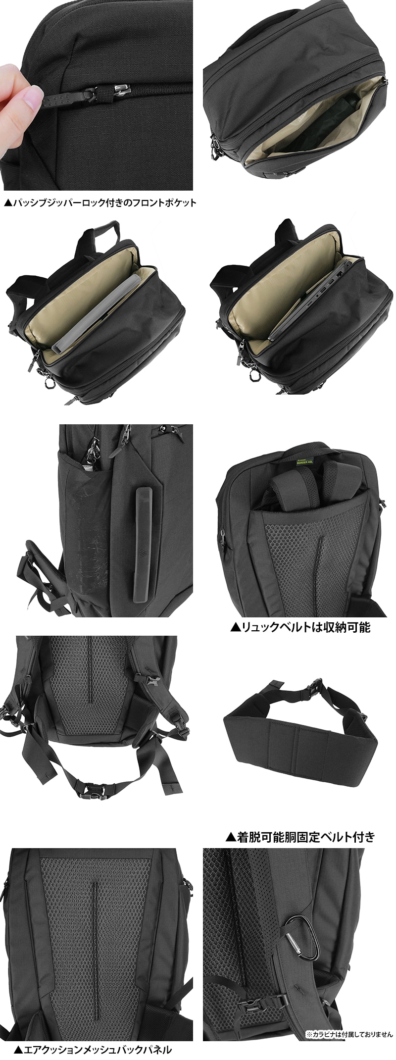 ・セキュリティを強化されたパッシブジッパーロック付きのフロントポケット