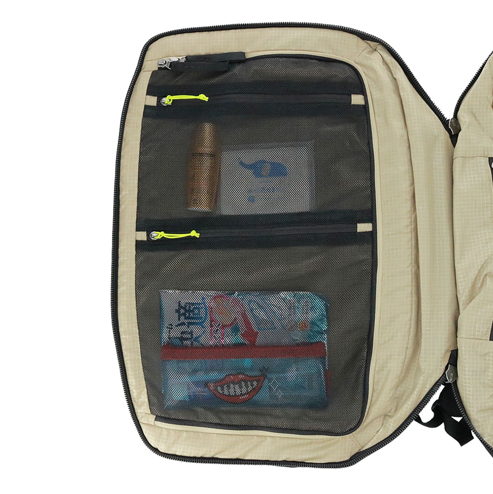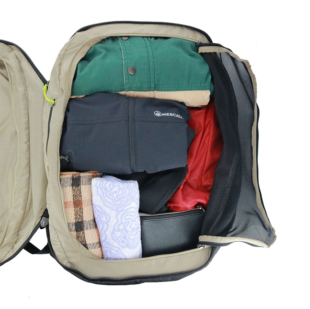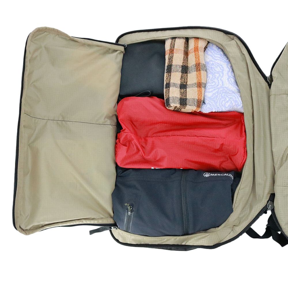 ・内部はスーツケースのようにアクセスできる、スプリットケース設計