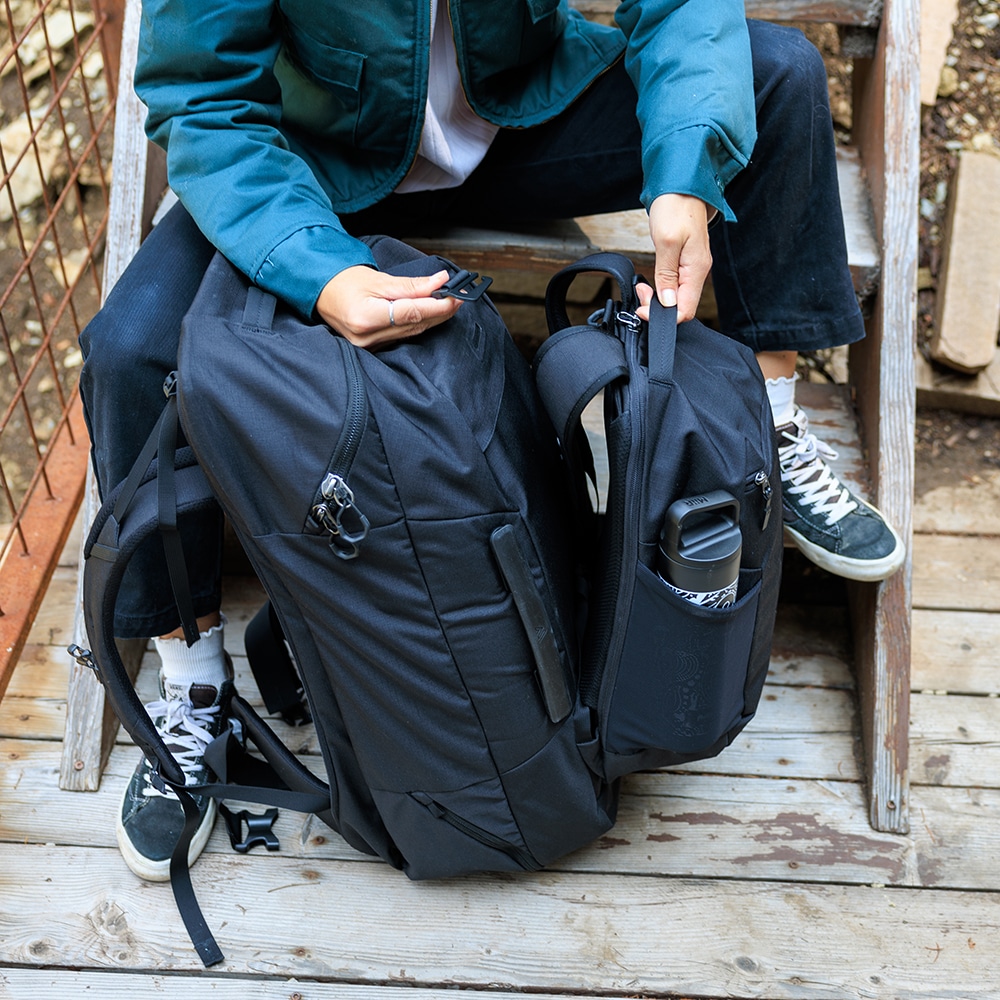 耐衝撃性とパッキングのしやすさが特徴のスーツケースに、バックパックの機動力と快適さを組み合わせたようなデザインになっています。