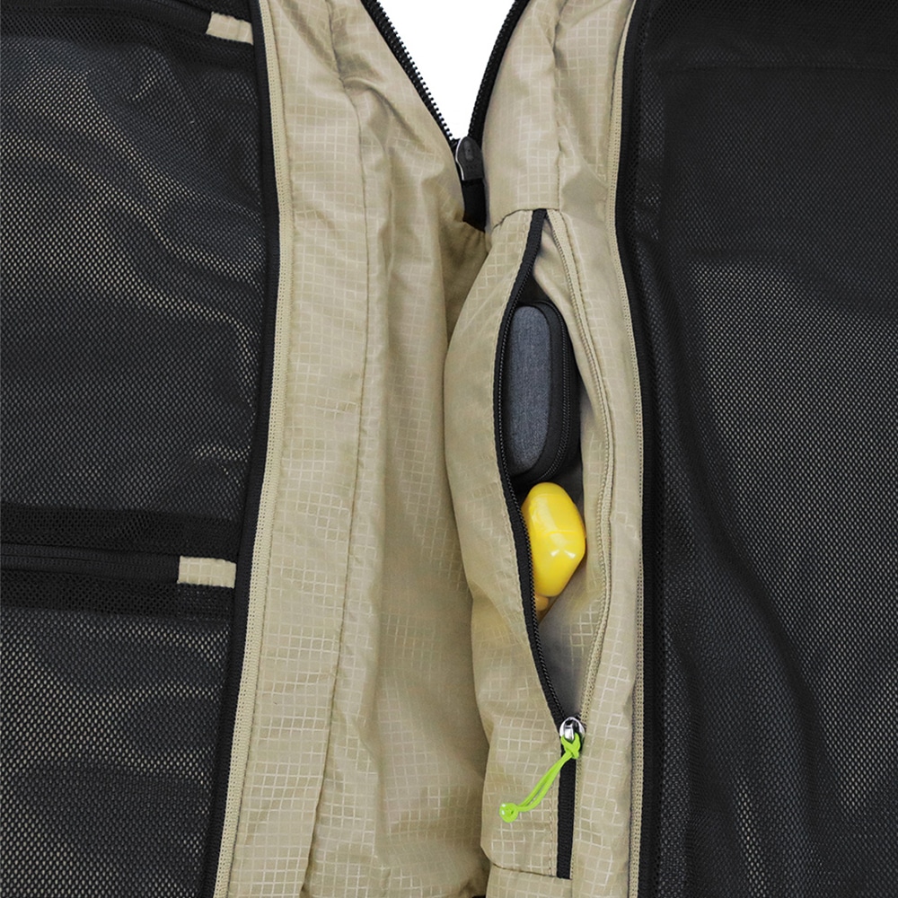 ・空港での預け入れ時に、荷物や背面を守るファスナーカバーを搭載。(不要時はバッグに収納)