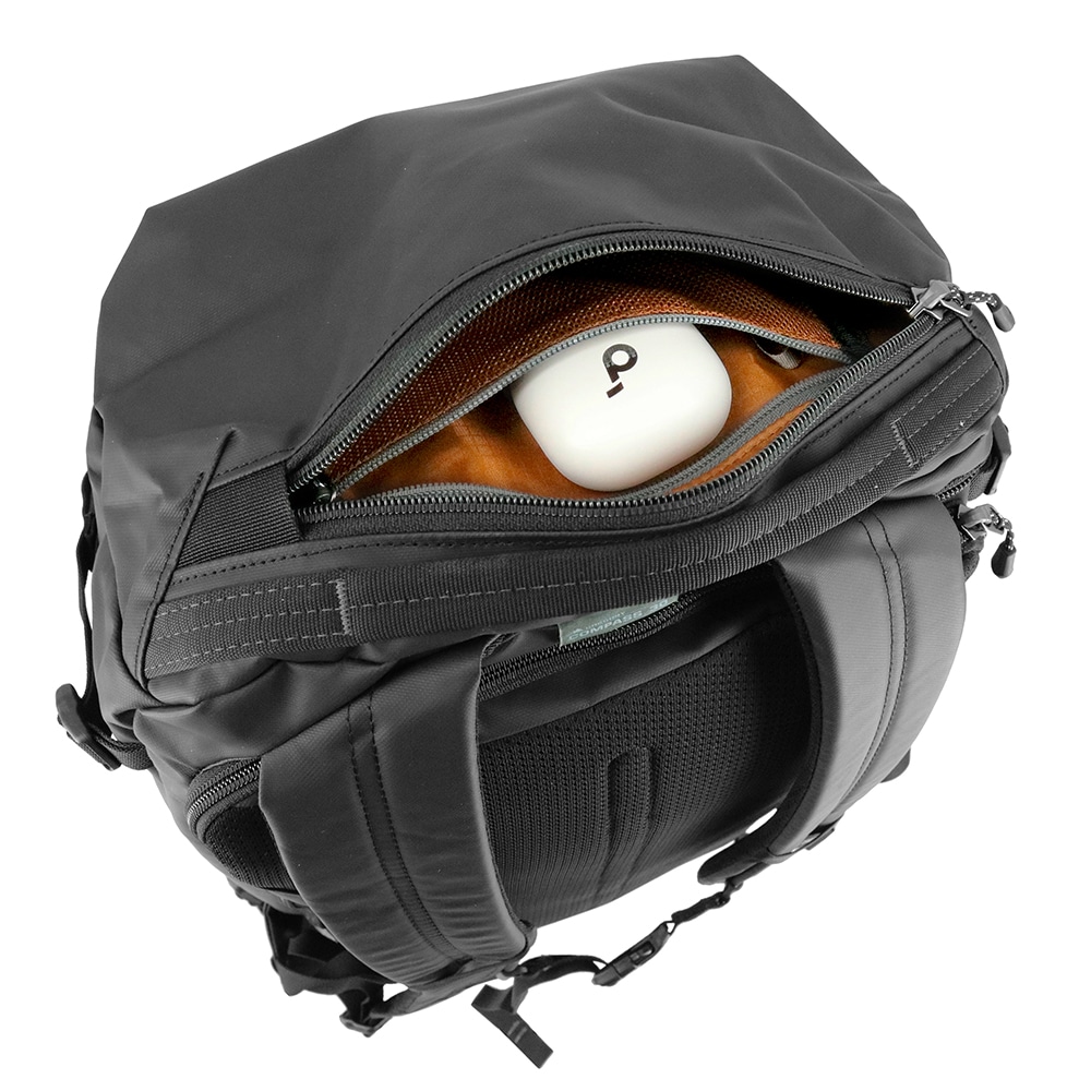 背面からメイン収納にアクセスする構造で、防犯性が高く旅行にもピッタリ!