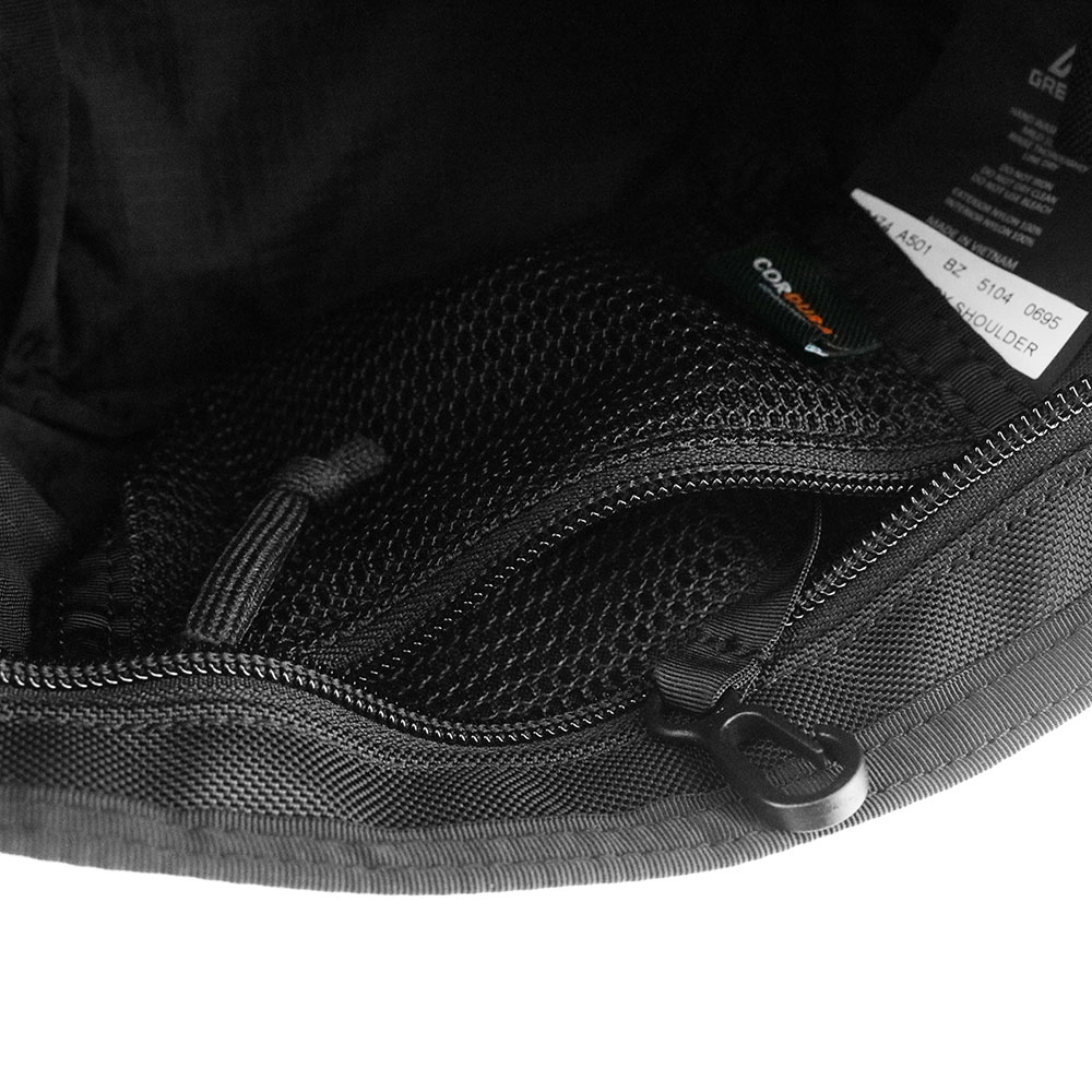 ■内部に小さくバラツキがちなアイテムの収納に便利なキーフォブ付きジッパー付きメッシュポケット