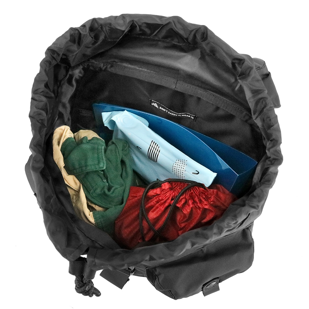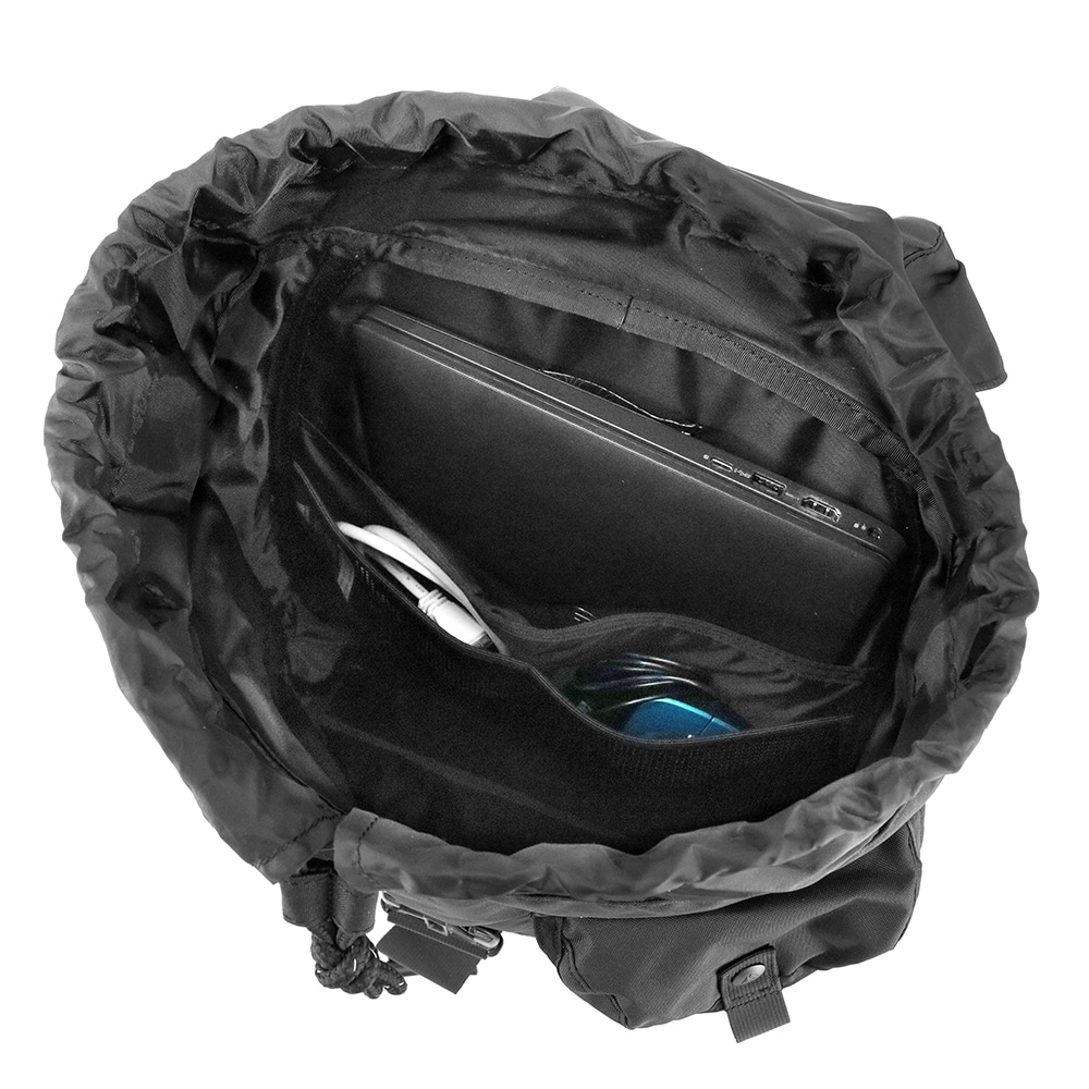 ■クイックアクセスが可能なバックル×ドローコード開閉のメイン収納。