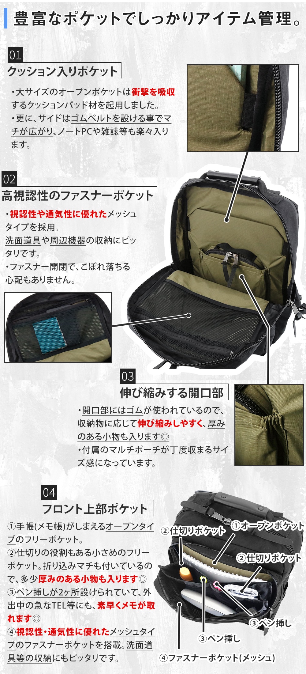 豊富でスタイリッシュなポケット使いと快適な背負い心地で、ストレス無く使用出来る『カバートミッションデイ V4』