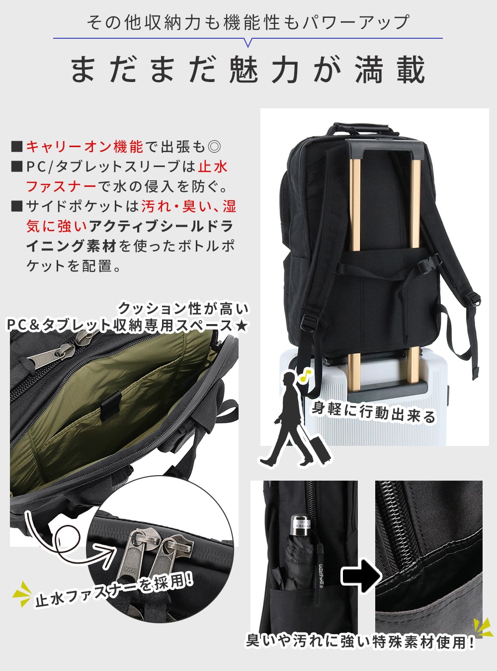 「ビジネスバッグに見えないビジネスバッグ」がコンセプトで、カジュアルテイストな外見に、ビジネスの必要機能を搭載。