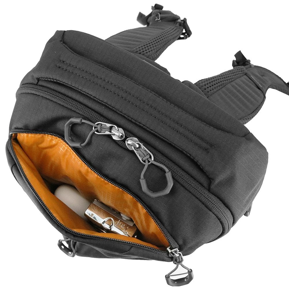 ・外側サイドのファスナーポケットはスウィングアラウンドアクセス可能。