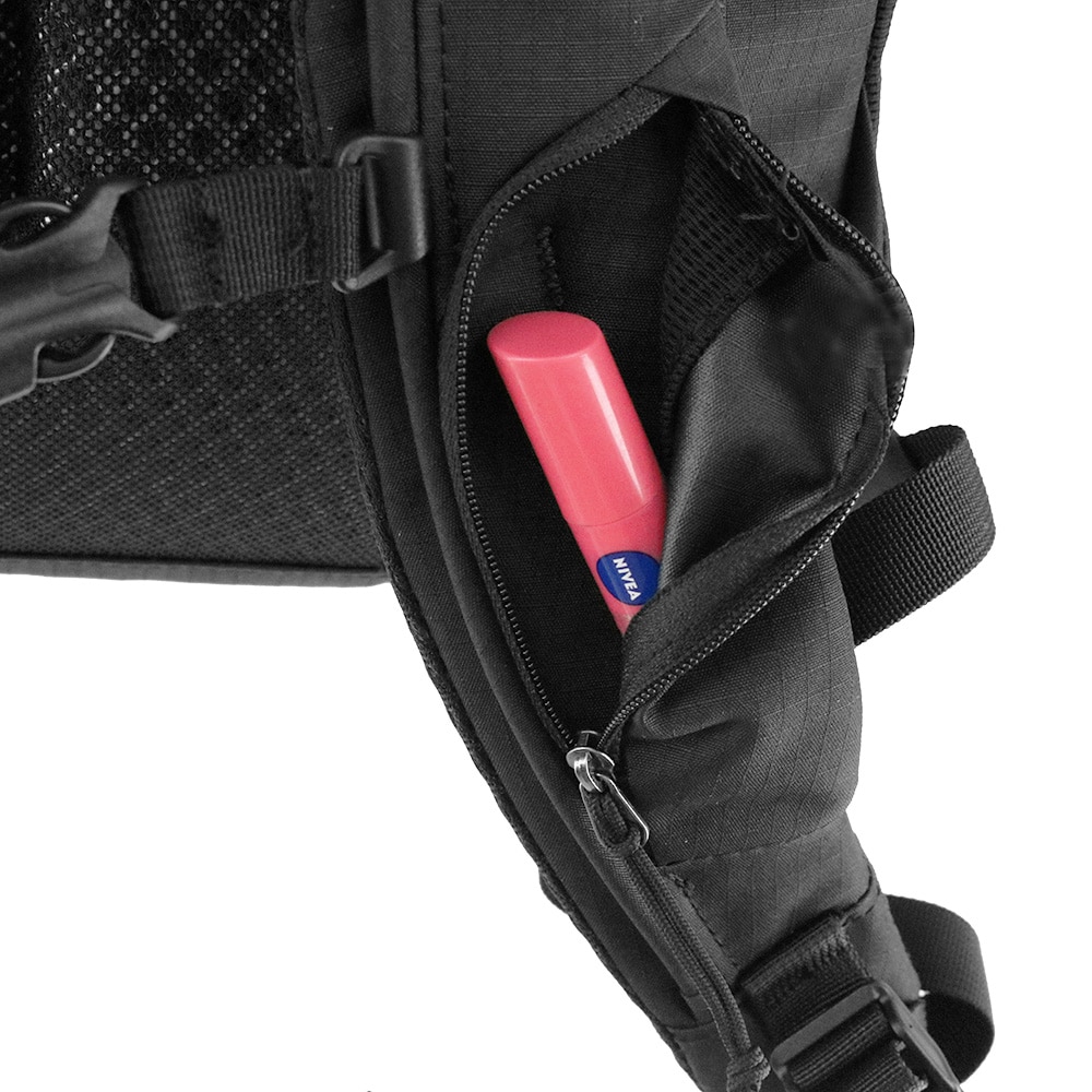 ■イヤホンや乗車券、リップクリームなどの収納に最適なハーネスポケットを搭載。