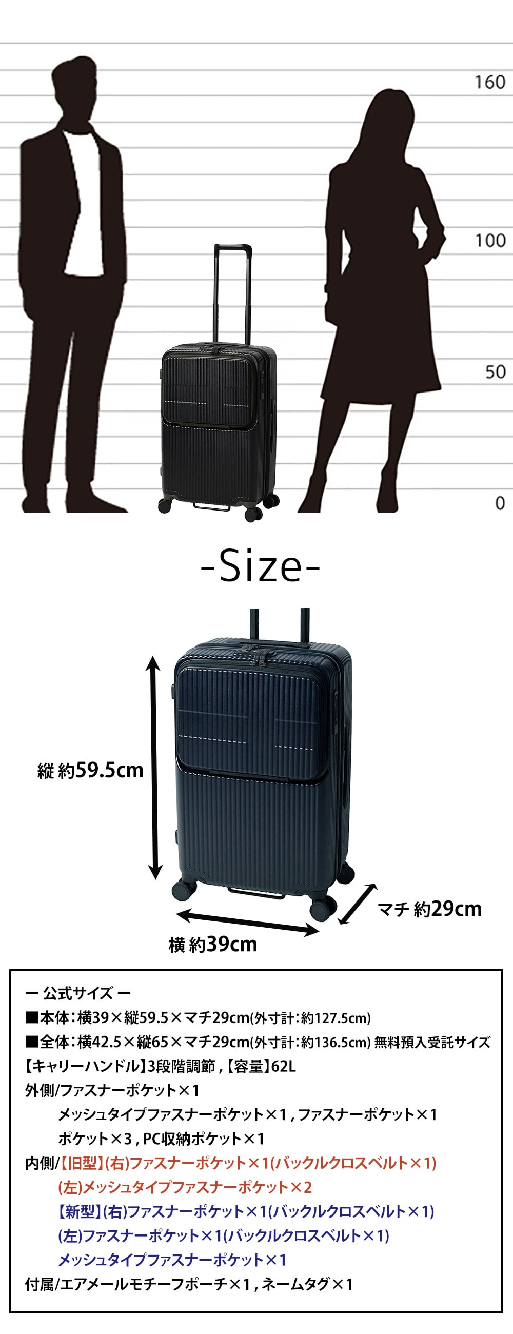 商品ビジネスキャリー スーツケース キャリー ハード INV60 中型 ファスナータイプ