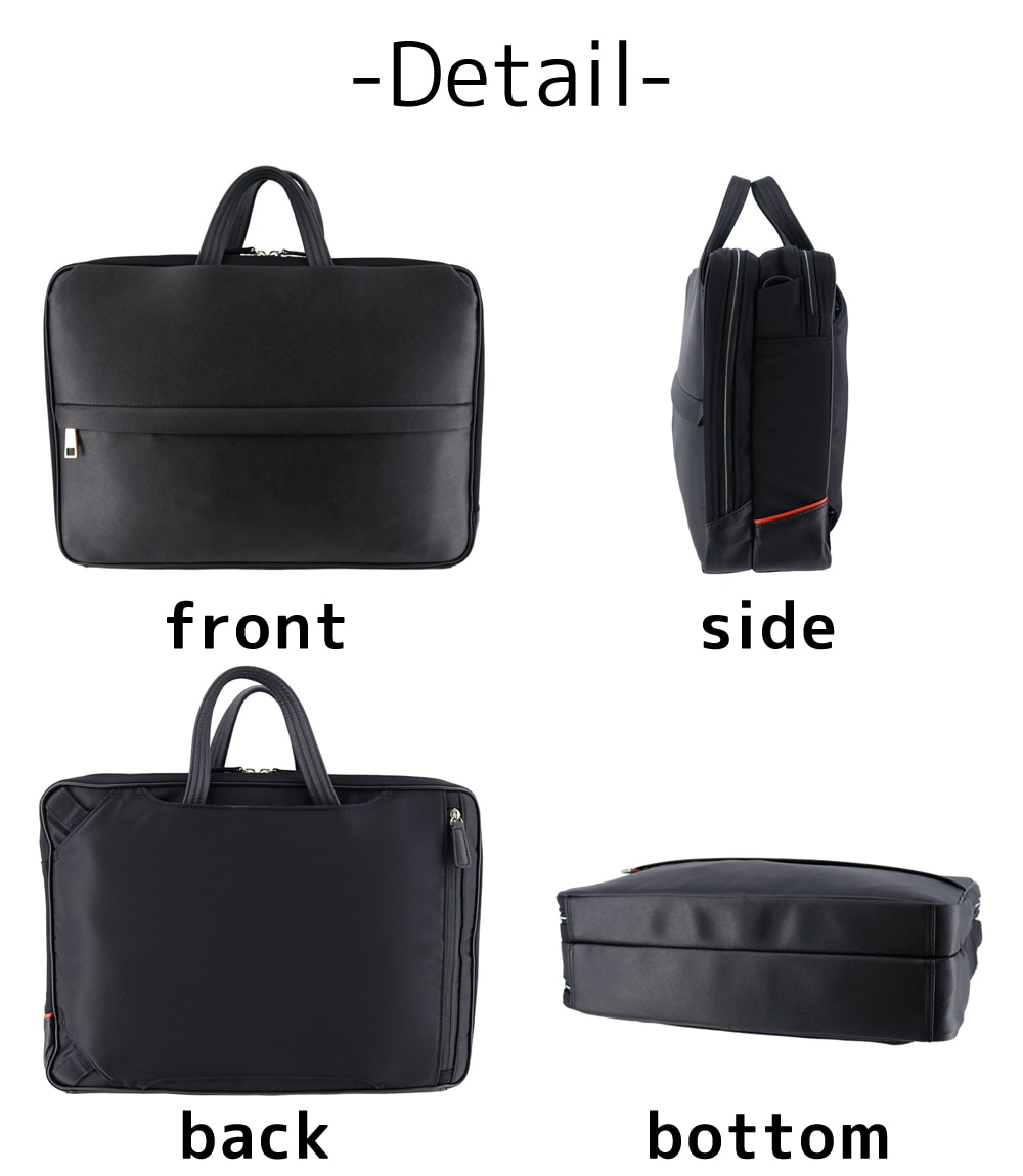 異素材使いでスッキリとしたデザインのキレイめビジネスバッグ。