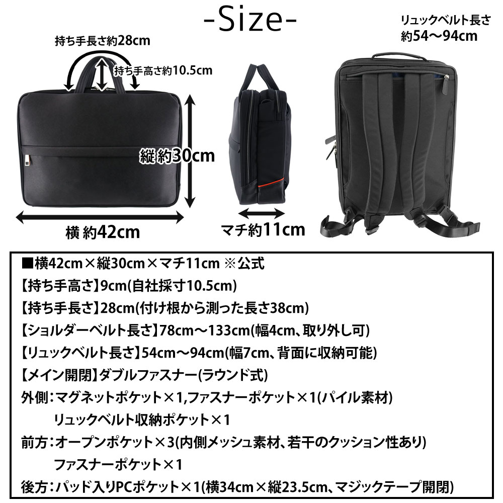 3WAYビジネスバッグ ショルダーバッグ リュックサック B4