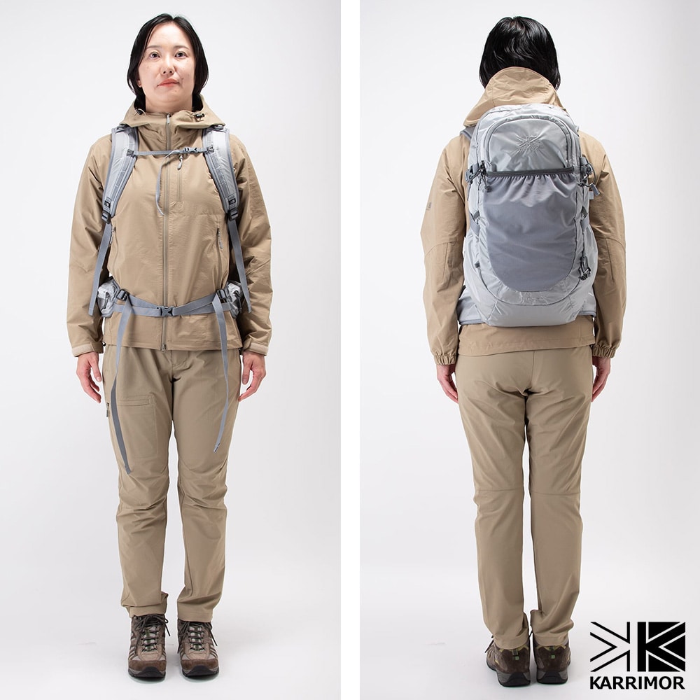 | 備考 | 【メイン開閉】ダブルファスナー 外側/ ファスナーポケット×1(オープンポケット×2、キーフック×1) メッシュオープンポケット×3 トレッキングポールホルダー×2 ボトルチューブを通す穴×1 Dカン×2 内側/ オープンポケット×1 メッシュファスナーポケット×1 付属/ レインカバー×1 ・ハイドレーション(登山中の給水システム)対応 ・バンジーコードを取り付けられるアタッチメントループ ・可動式チェストベルト ・着脱可能胴固定ベルト(ファスナーポケット×2) ・マチ調節ベルト | ||