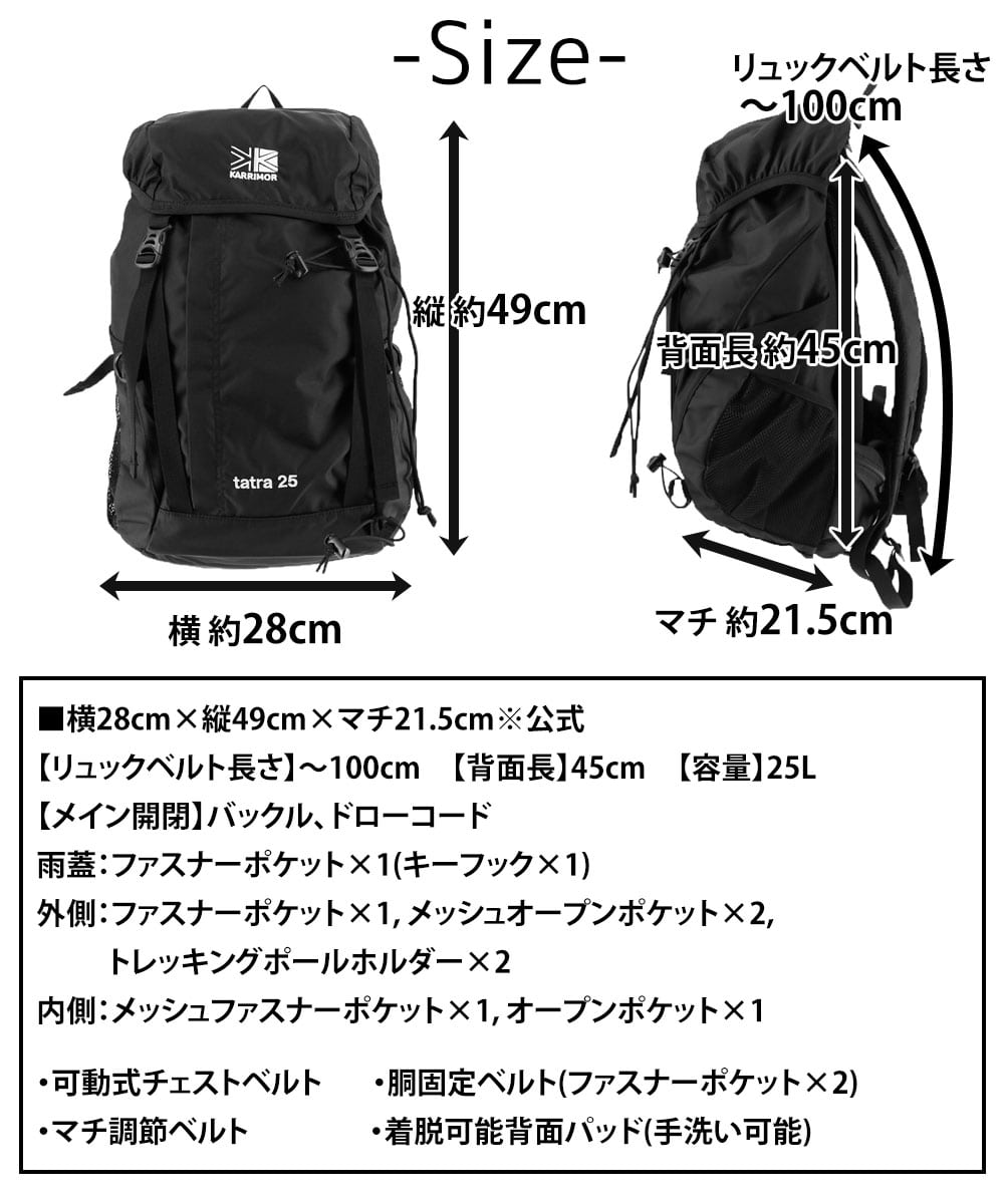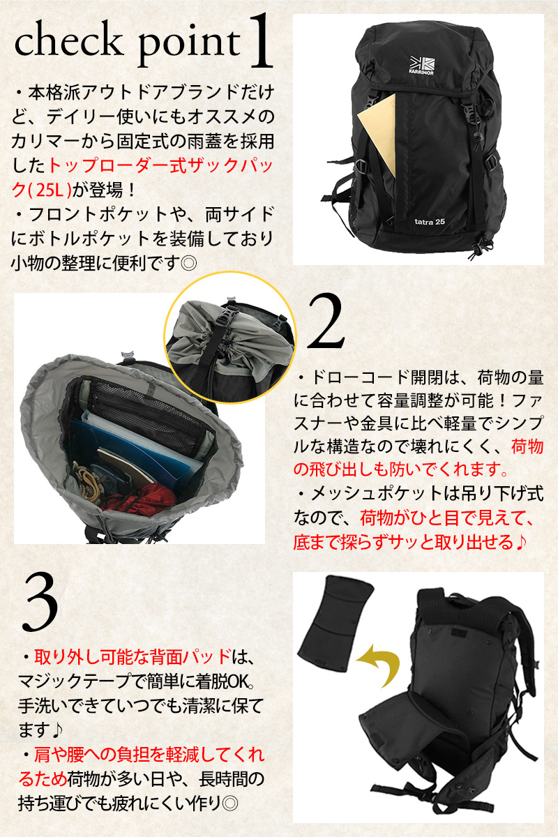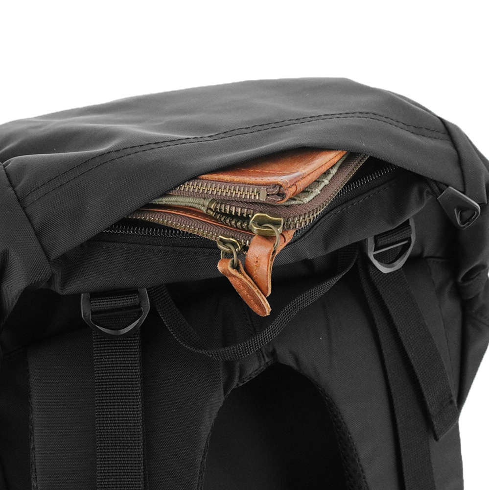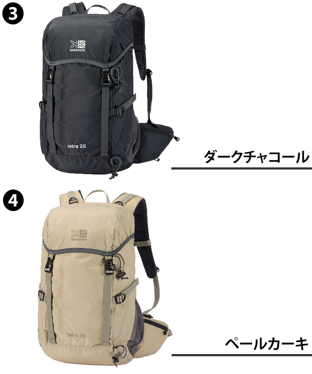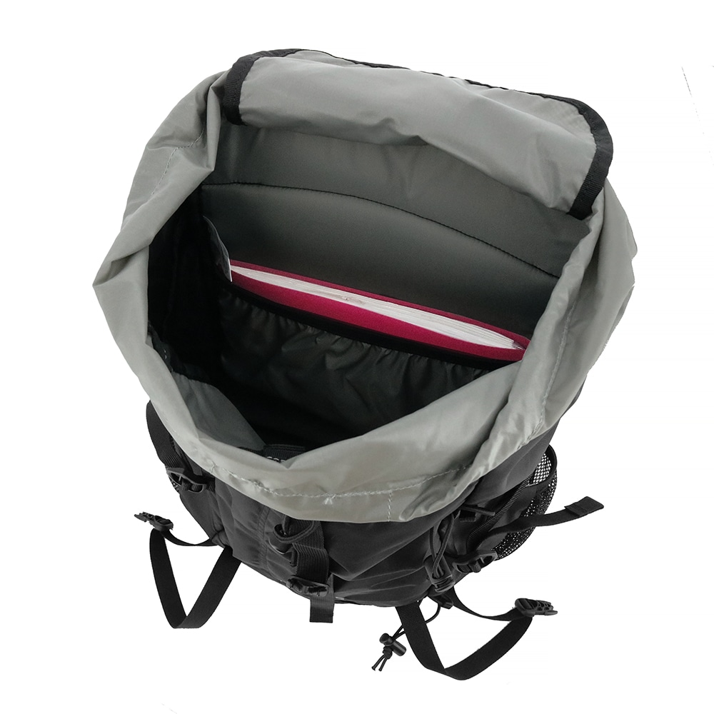 登山リュックでは定番の固定式の雨蓋を採用したトップローダー式ザックパック(25L)。