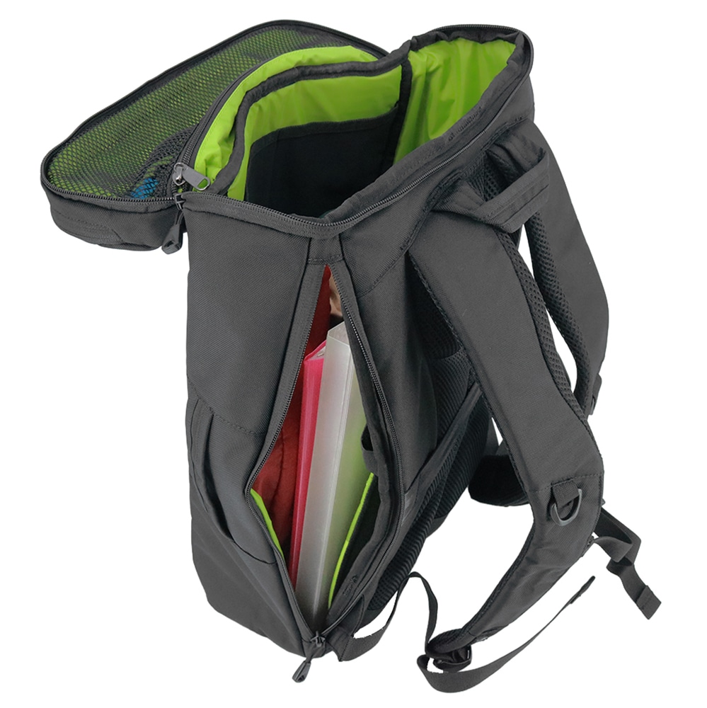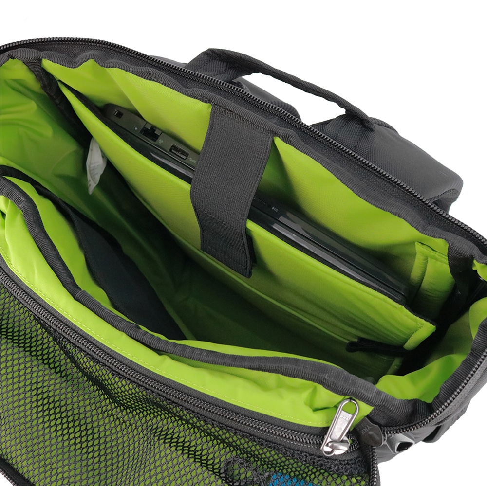 15インチまでのノートPCが入る専用ポケットは背面側に移動させた事で、より外部の衝撃から守ってくれる作りに。