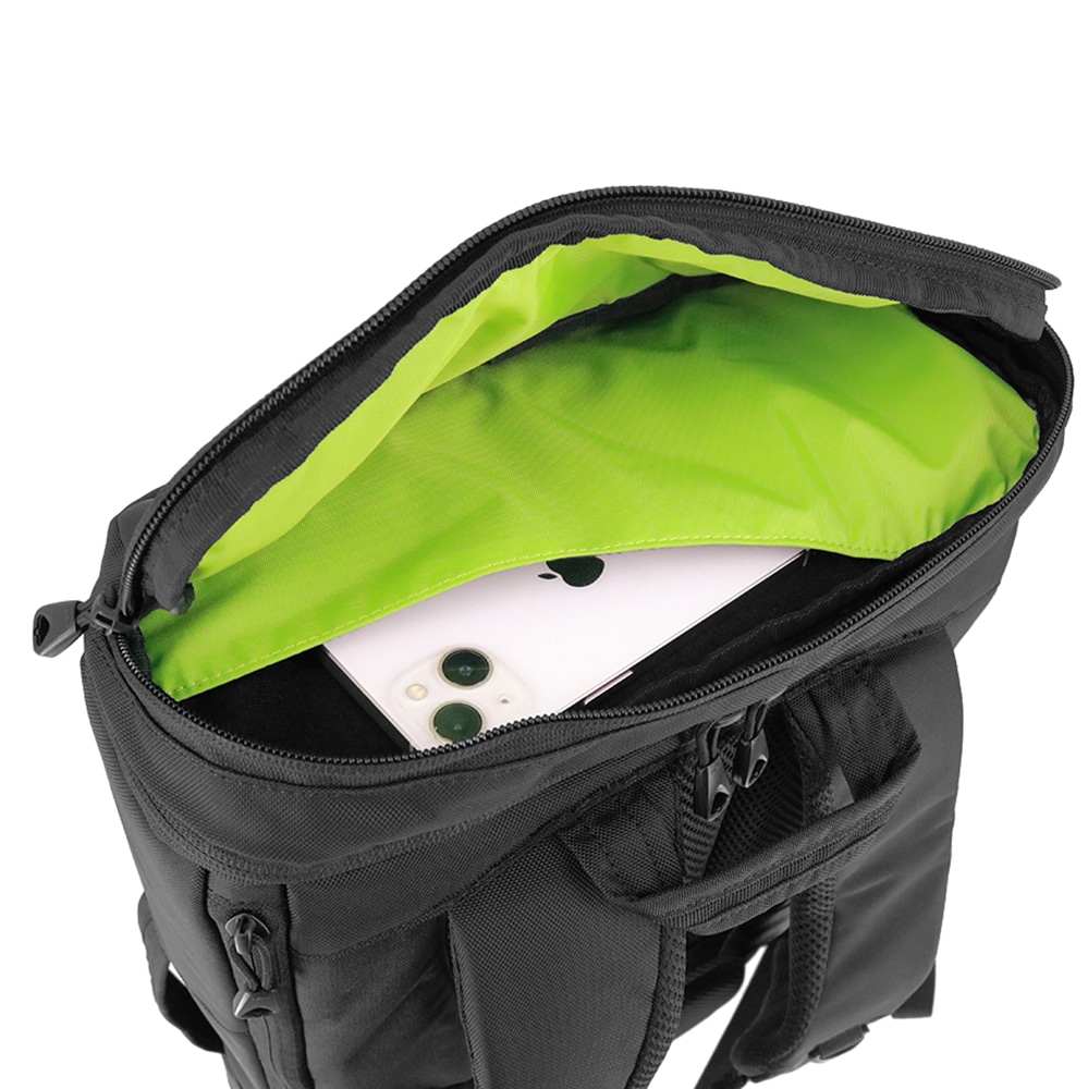 ・ゴムベルトでワイドに広がるサイドポケットは500mlペットボトルも収納可能。
