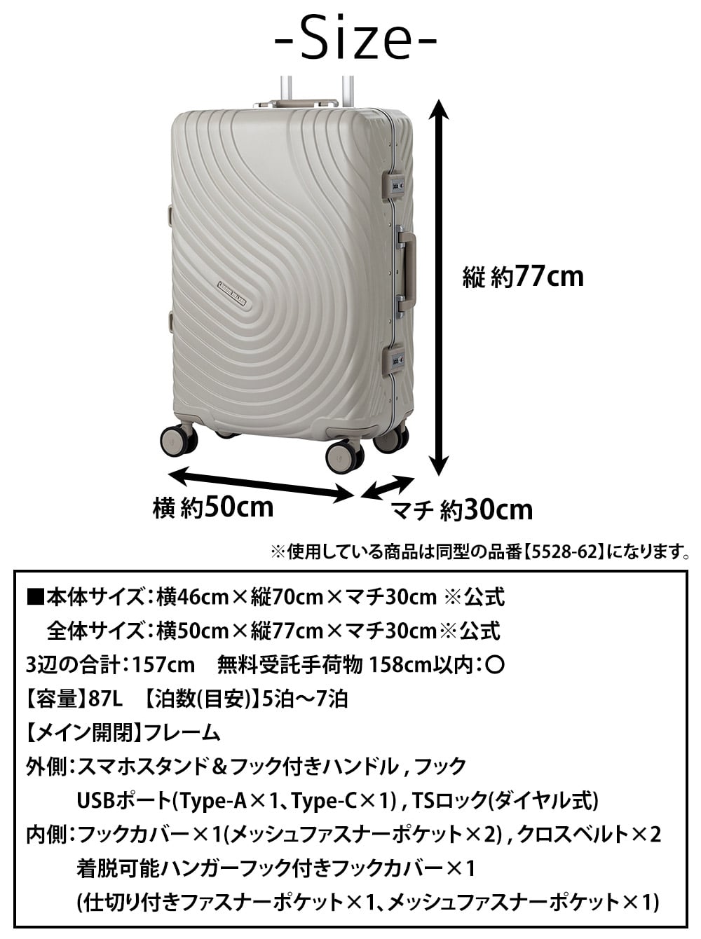 スーツケース キャリー ハード 87L 5~7泊 大型 フレームタイプ
