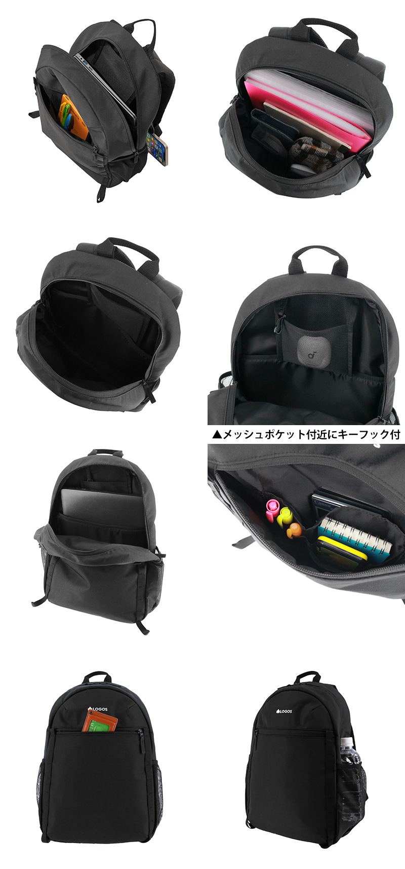 前面ファスナーポケット×1(オープンポケット×3、ペン挿し×3)