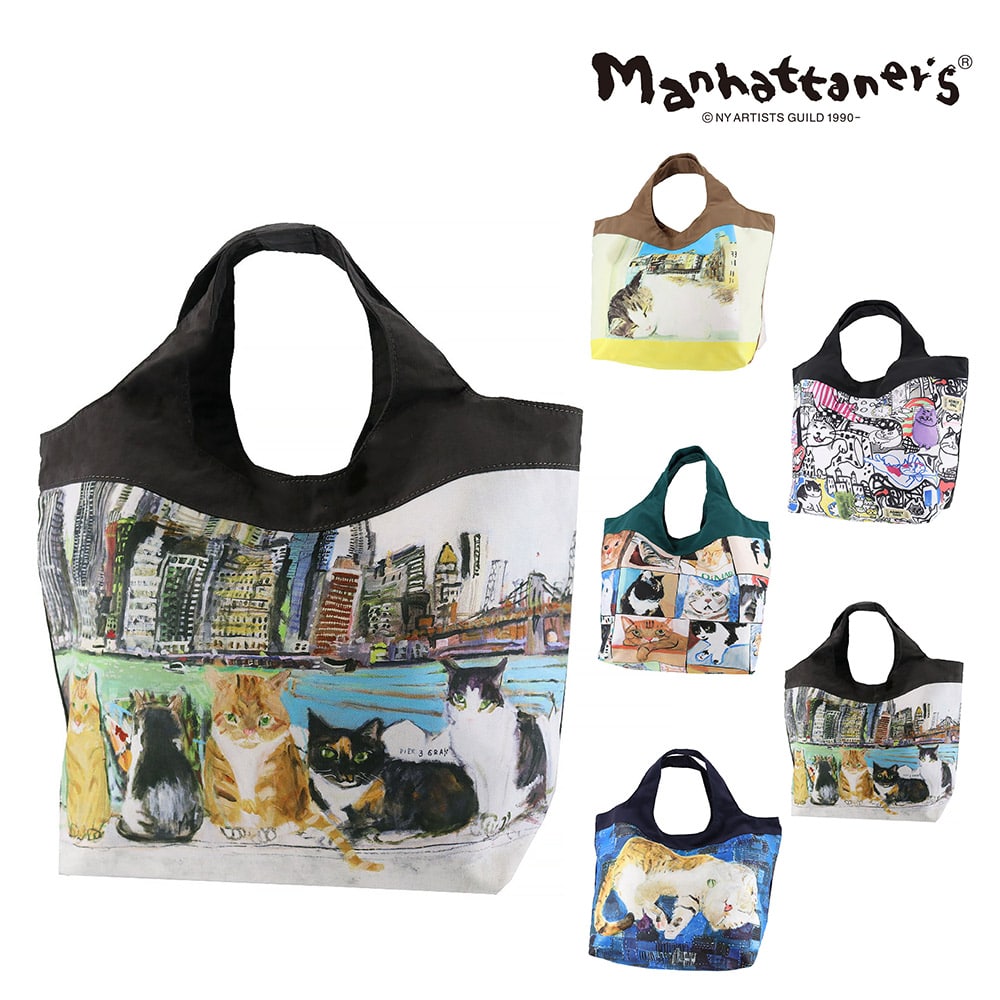 マンハッタナーズ manhattaner's トートバッグ エコバッグ 手提げバッグ サブバッグ 旅行 A4サイズ対応 人気 リニューアル 絵画 動物 プリント ナイロン かわいい Compact Bag 久下貴史