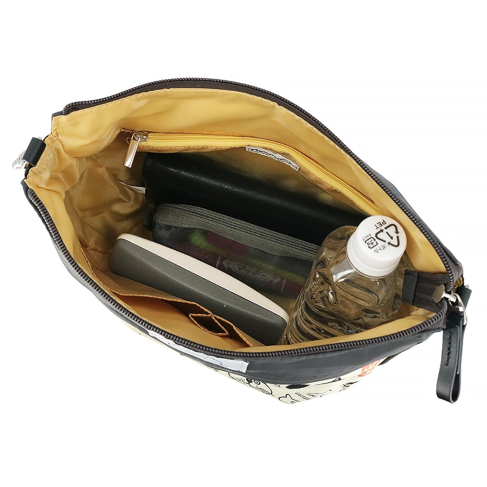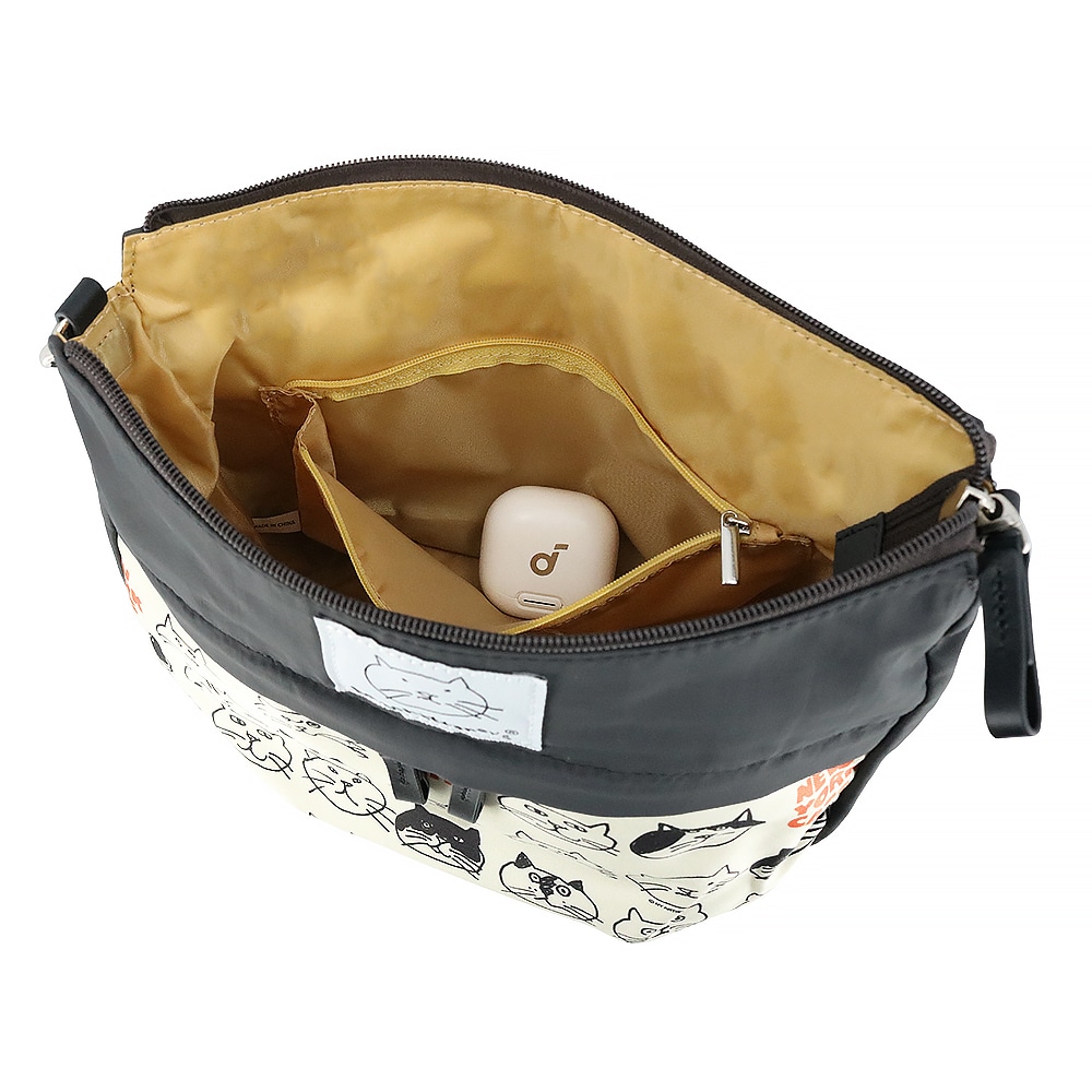 内部にはスマホやキーケースなどの収納に適した片マチ付きポケットを搭載!