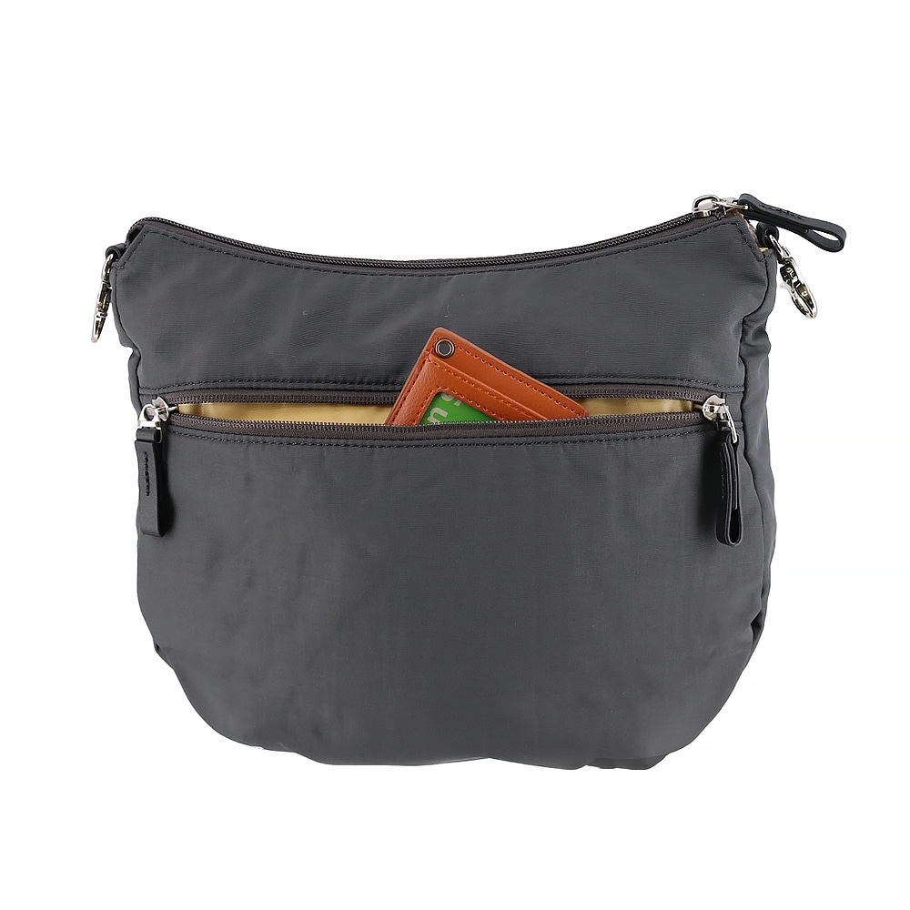 無地のリサイクルナイロンとプリント生地を合わせた、ソフトで軽量な【アベニュー】シリーズの横型2WAYバッグ。