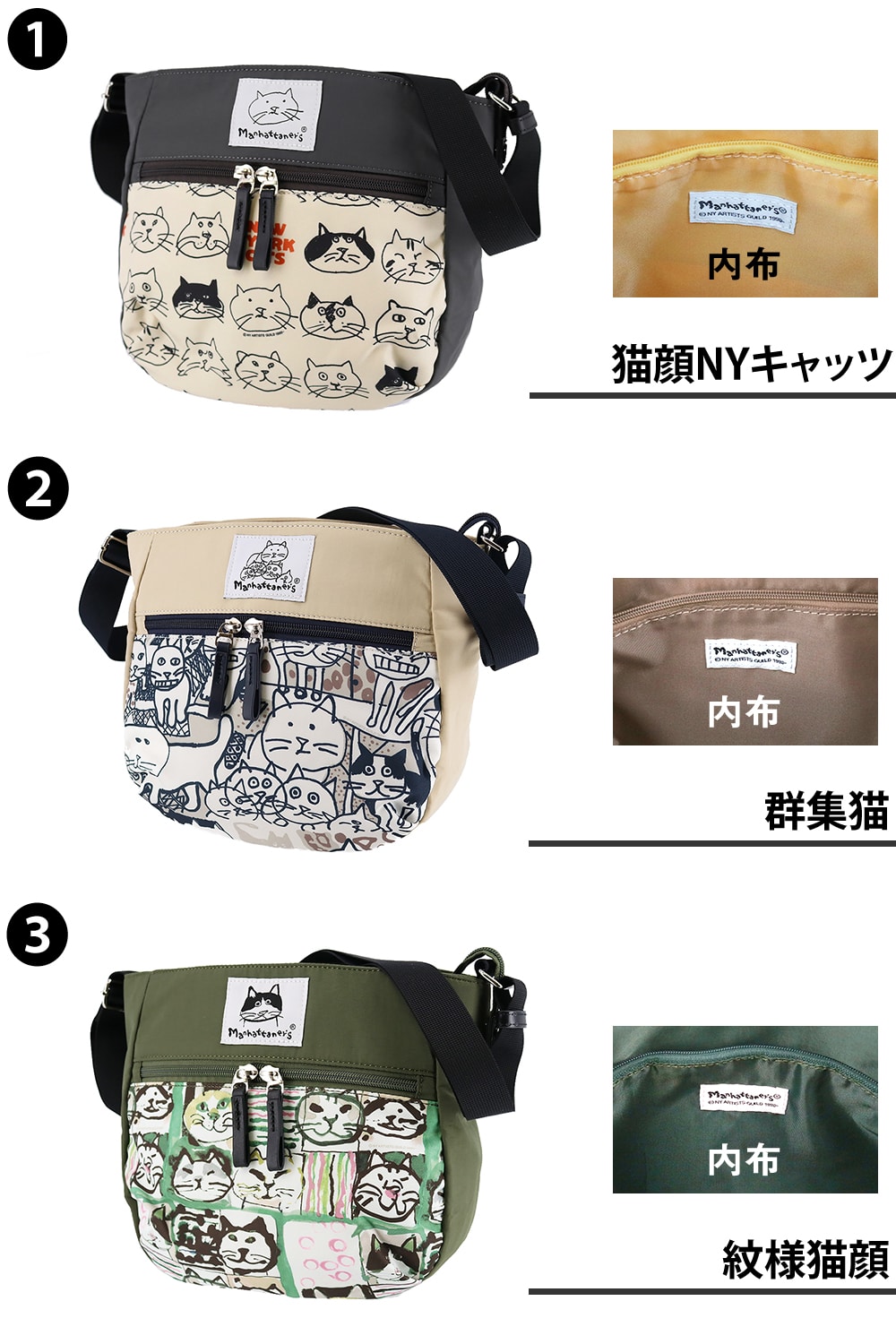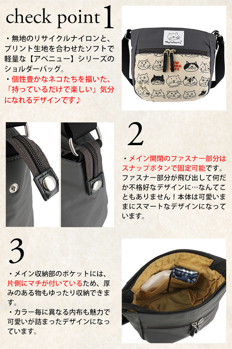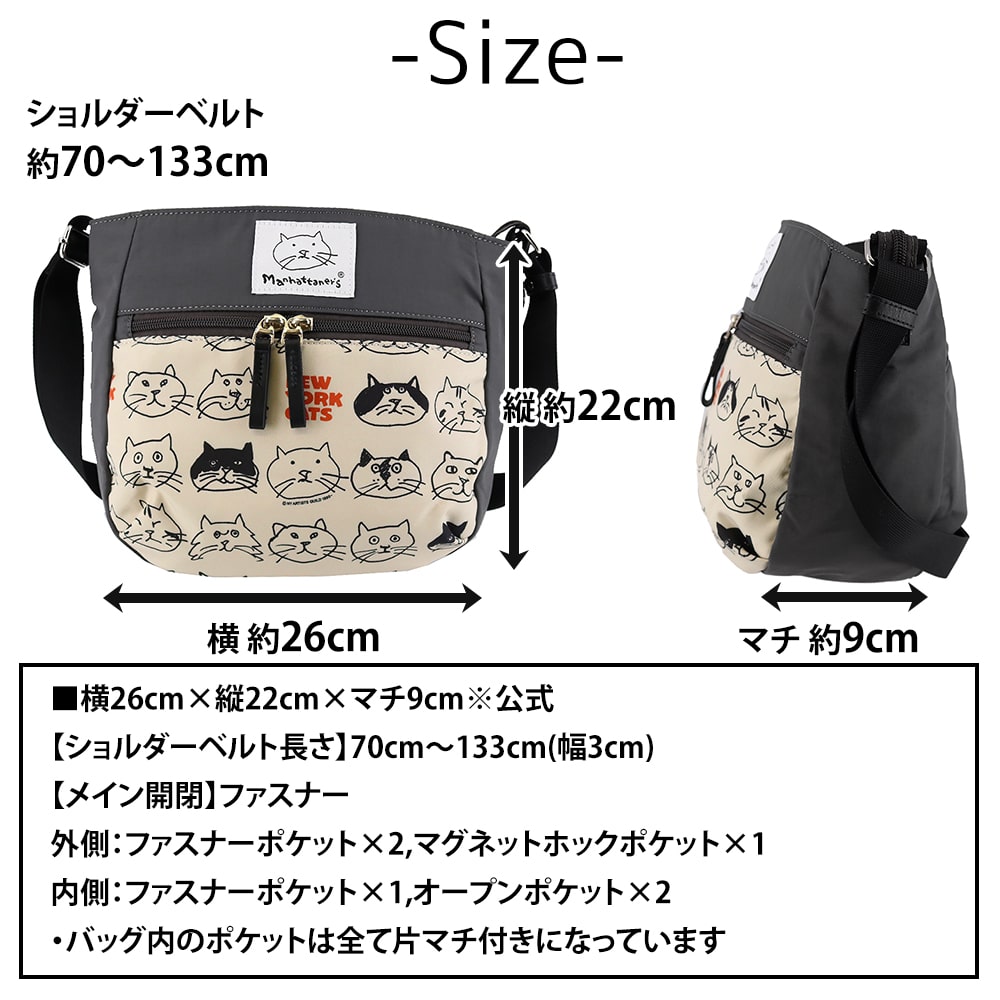 マンハッタナーズ バッグ ショルダー 斜めがけバッグ サブバッグ manhattaner's アベニュー ショルダーバッグ A5 0712474 レディース 送料無料 誕生日プレゼント ギフト ラッピング無料 【正規代理店】 2.群集猫 -0712474-5040