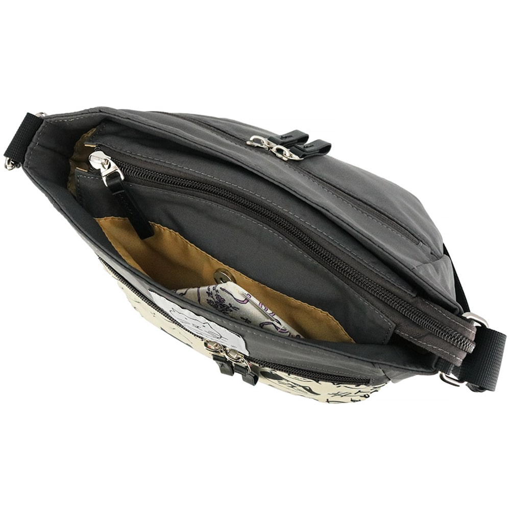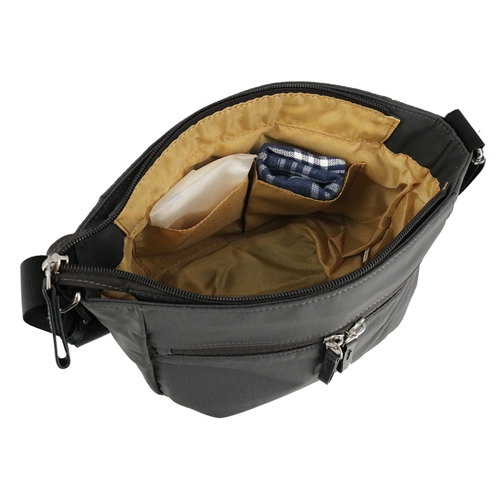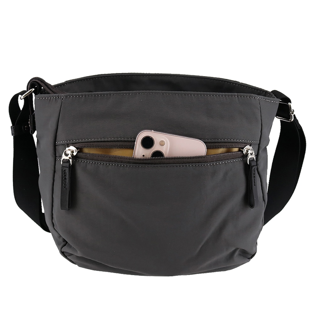 無地のリサイクルナイロンとプリント生地を合わせた、ソフトで軽量な【アベニュー】シリーズのショルダーバッグ。