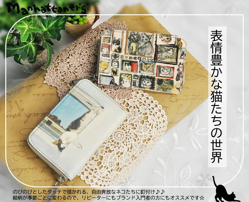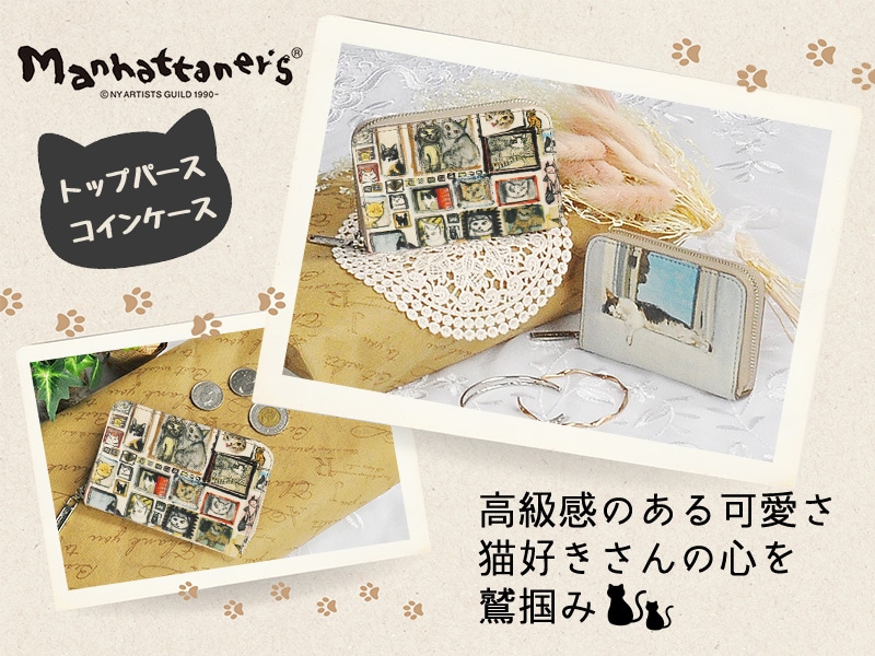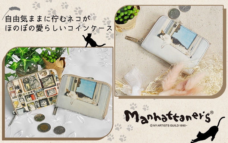 マンハッタナーズ manhattaner's コインケース 小銭入れ ラウンドファスナー キーリング付き 通勤 通学 旅行 小さめ ネコ ねこ アニマル 動物 猫 かわいい アート 久下貴史 Top Purse