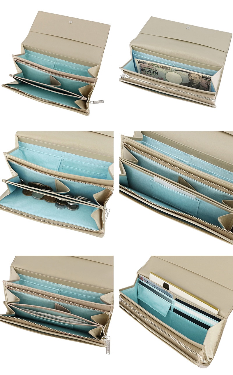L字ファスナー小銭入れ×2層(片方に仕切りあり、フリーポケット×1、ミニポケット×1)