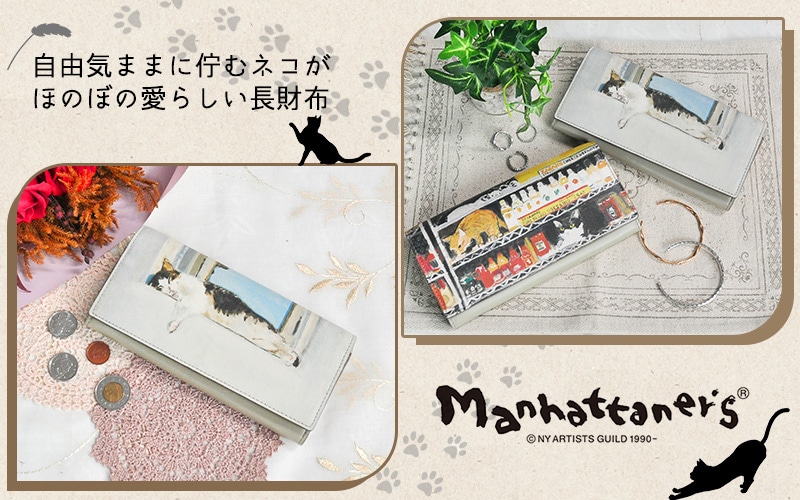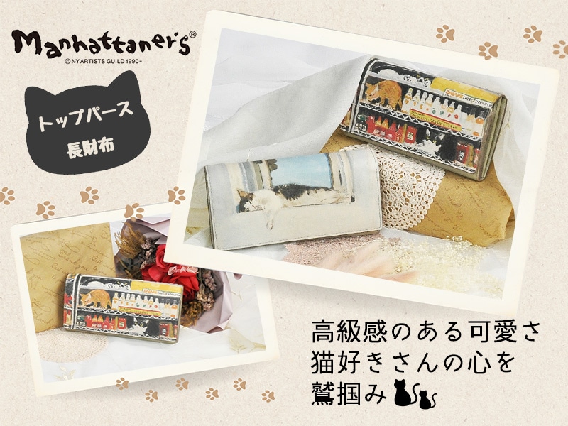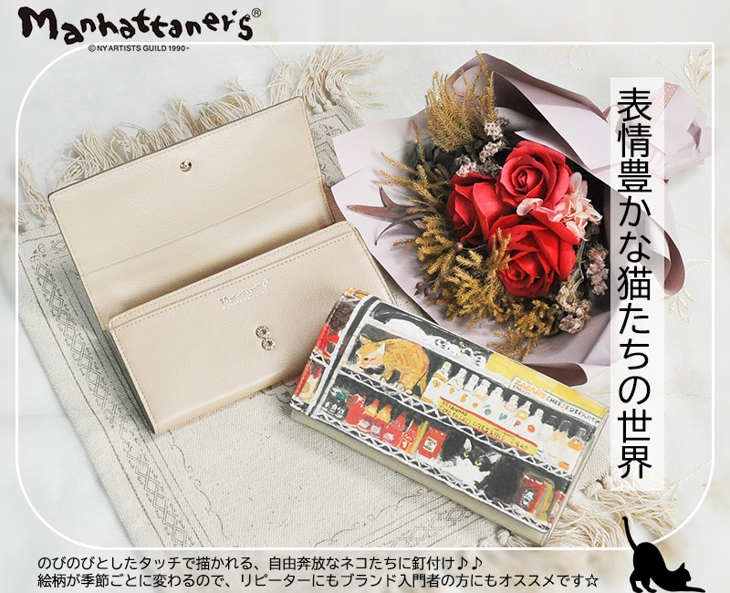 マンハッタナーズ 財布 長財布 本革 小物 雑貨 manhattaner's トップパース かぶせタイプ 0751515 0751525 レディース 送料無料 誕生日プレゼント ギフト ラッピング無料 【正規代理店】 5.新グルメ猫 -99x0751515-1010